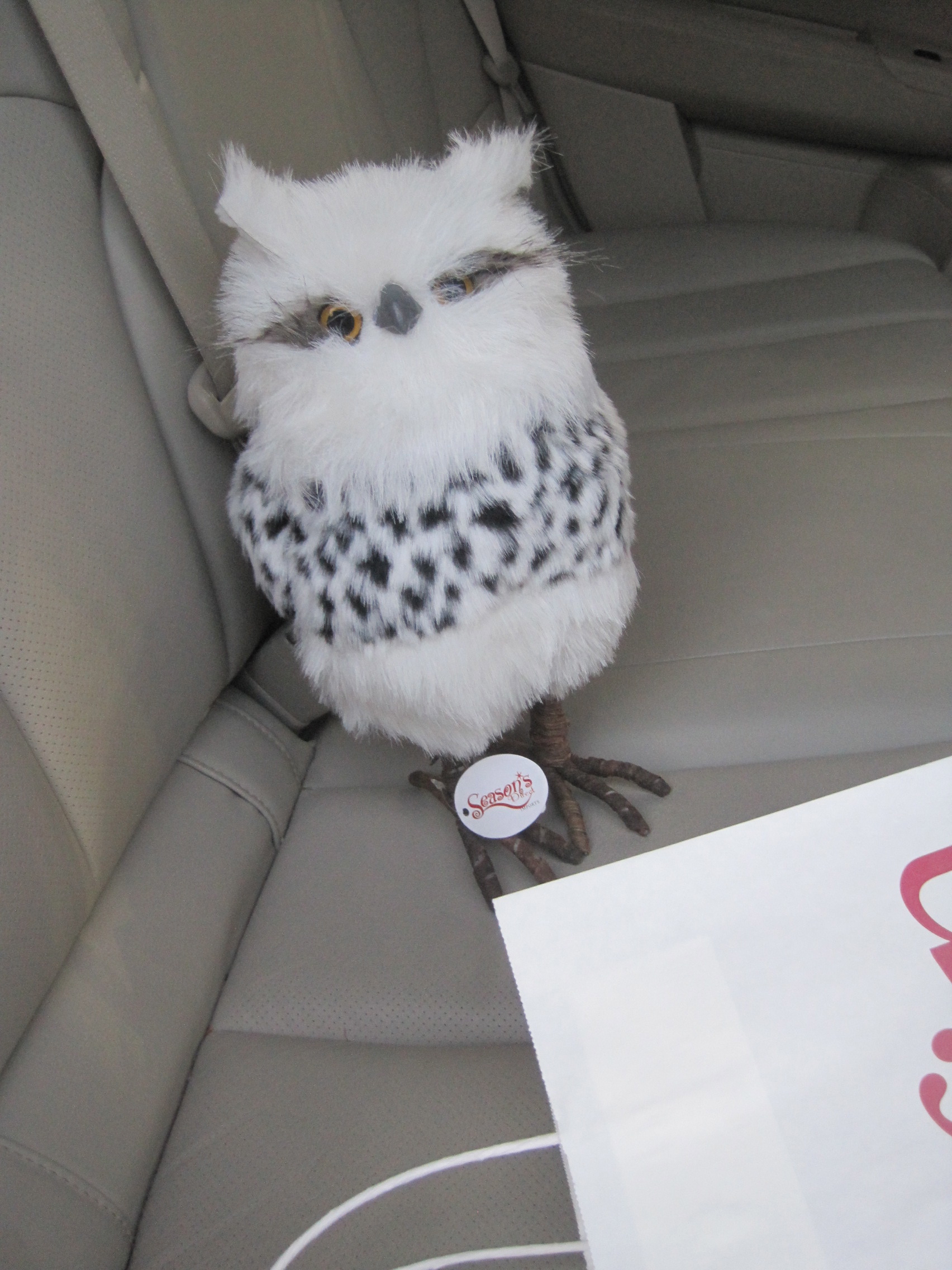 Awww! I’m making this much more heart-wrenching than it needs to be. Why did I have to take a picture of Owlie (now I’ve named him) (and assigned a gender) looking like the family pet in the back of the car. The fact is, I could tell our younger daughter did not care enough about this gift, and therefore it was a gift of clutter. Sorry, sad but true (which is turning out to be the theme of this post). On a happier note, I got the mission accomplished before the cut-off date for after-Christmas returns.