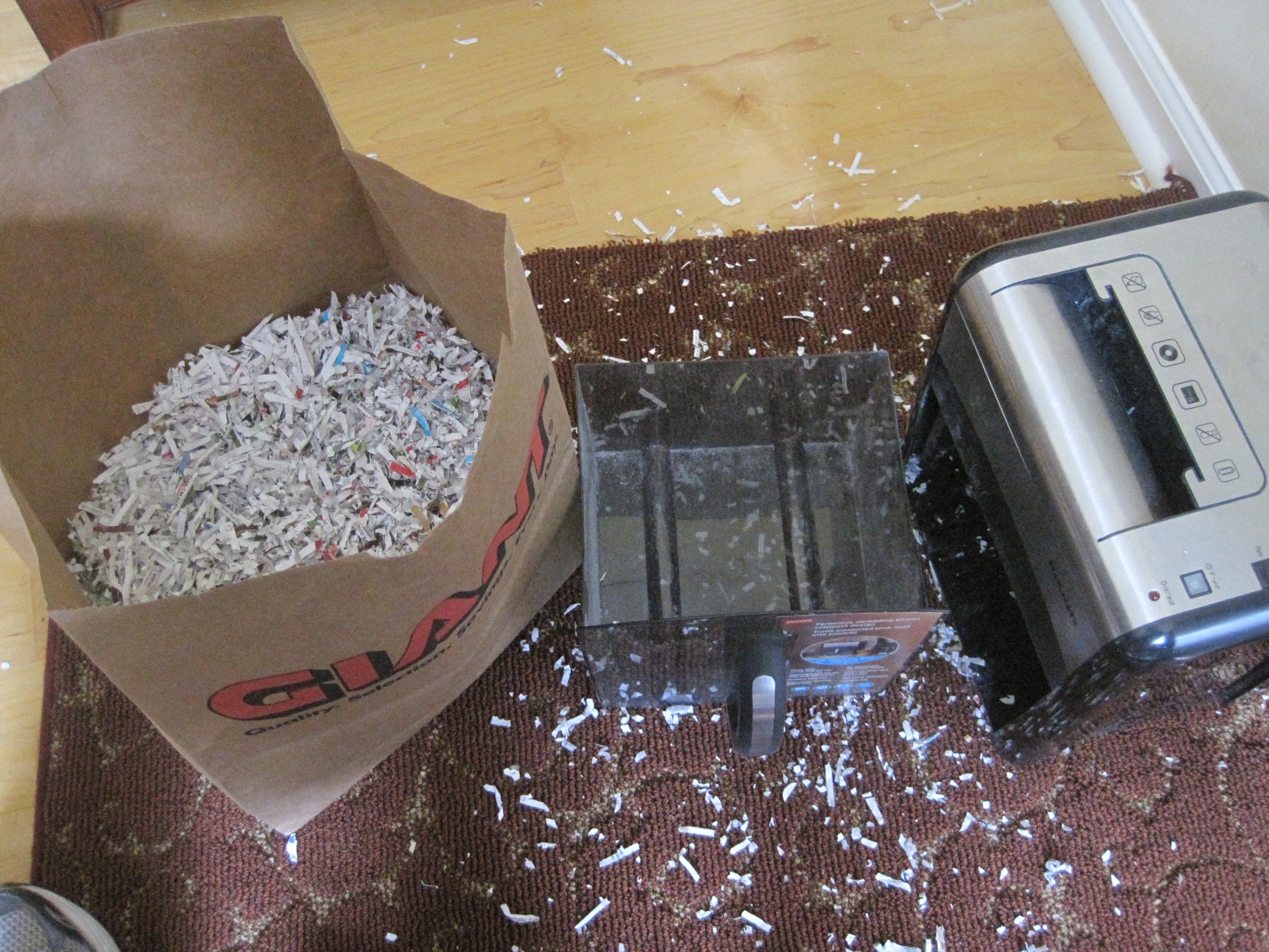 But not today. We are making progress in this household. Time-sensitive papers out into the world, and information-sensitive paper shredded. Now for the dark, spinning vortex of the vacuum cleaner.