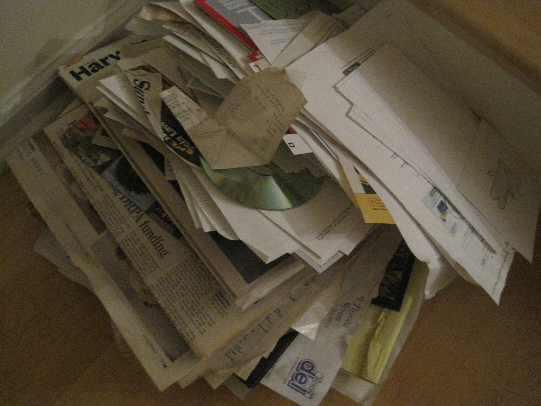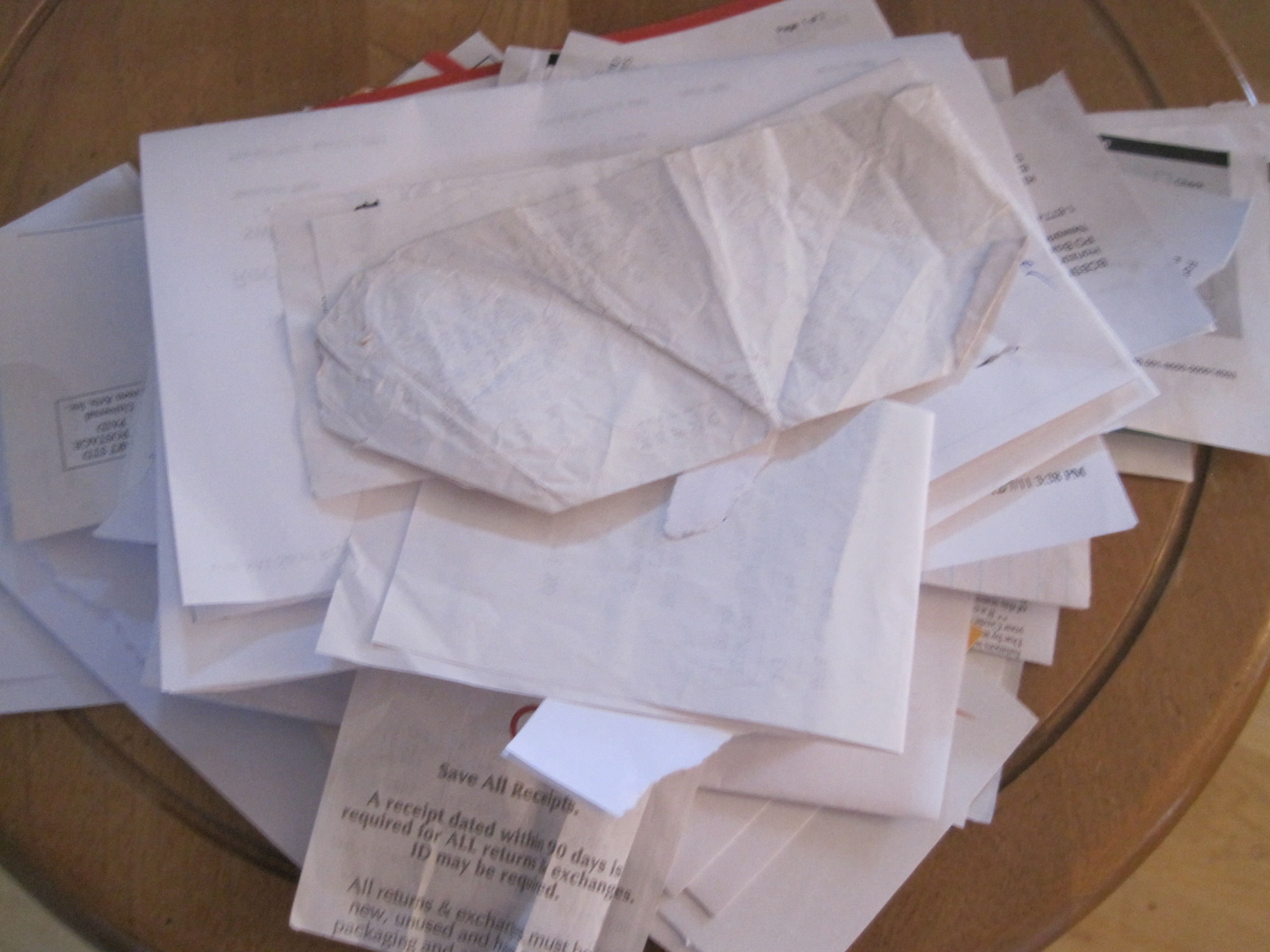 But the devil is in the details: the piles within the pile. This one isn’t too bad: the shred pile. Easy to spot and eliminate. More for the recycling bag!