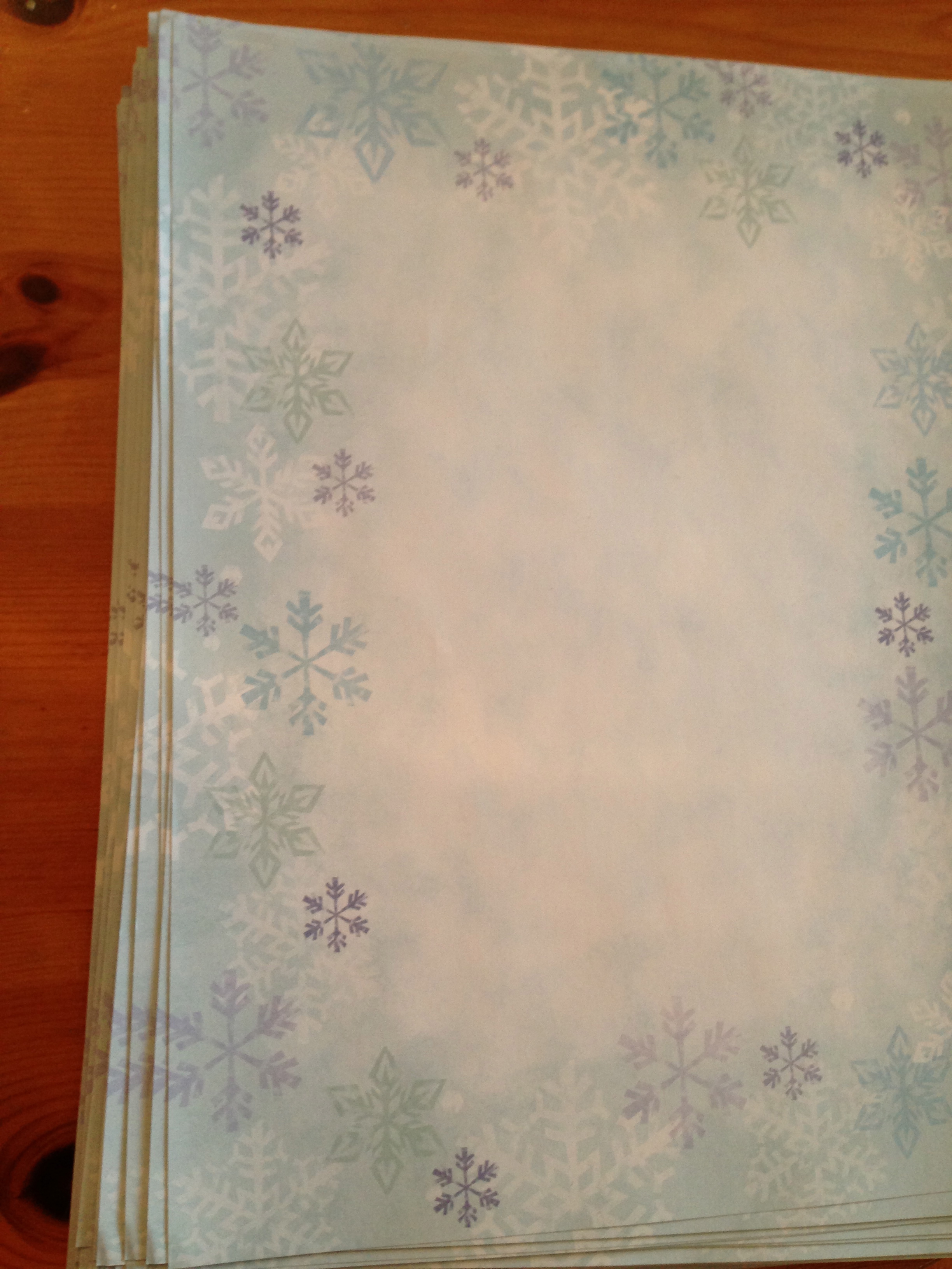 This sweet and innocent-looking paper was an item I pounded the pavement to find at holiday time. The idea was to print the newsletter on the front and a poem written by a dear brother-in-law, who passed away last spring, on the other side, with a photo above it. The photo would not print at Staples; at Kinkos, the paper got stuck in the machine; a photo-copy of the paper, photo-copied, was headache-inducing to read (just as trying to describe it is). I’m really leaving out many other obstacles having to do with group-editing and wrong computer-file type. Blah, blah, blah, boo-hoo.