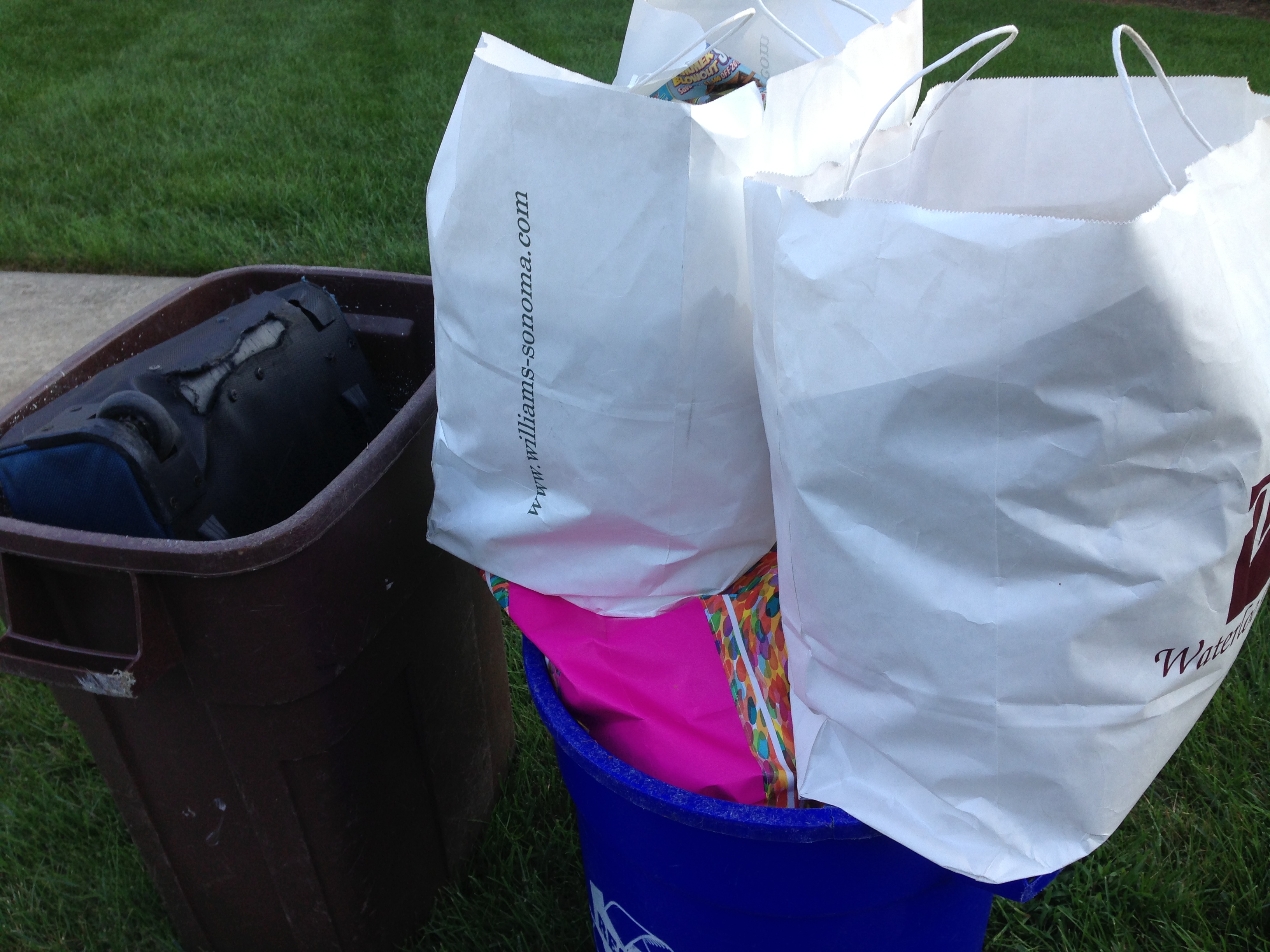 Ready for the recycling truck. Note that bad old suitcase of yesterday’s post kicked to the curb.