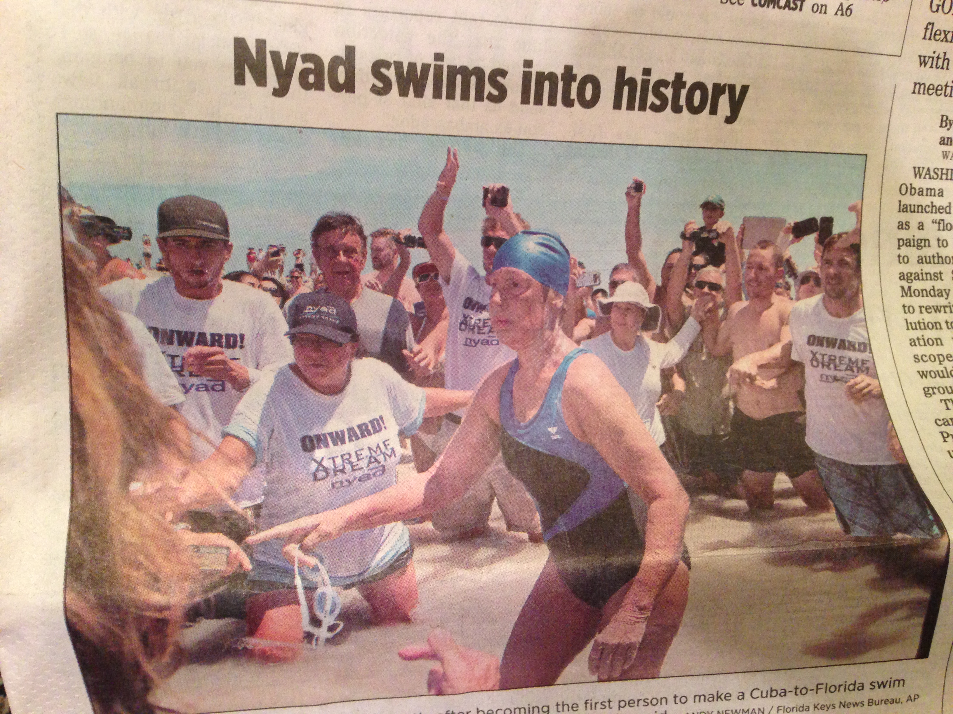 I was inspired by the story on the front page of today’s Philadelphia Inquirer. Endurance swimmer, 64-year old Diane Nyad, became the first person to swim from Cuba to Florida, approximately 110 miles, without the help of a shark cage. It was her fifth attempt.