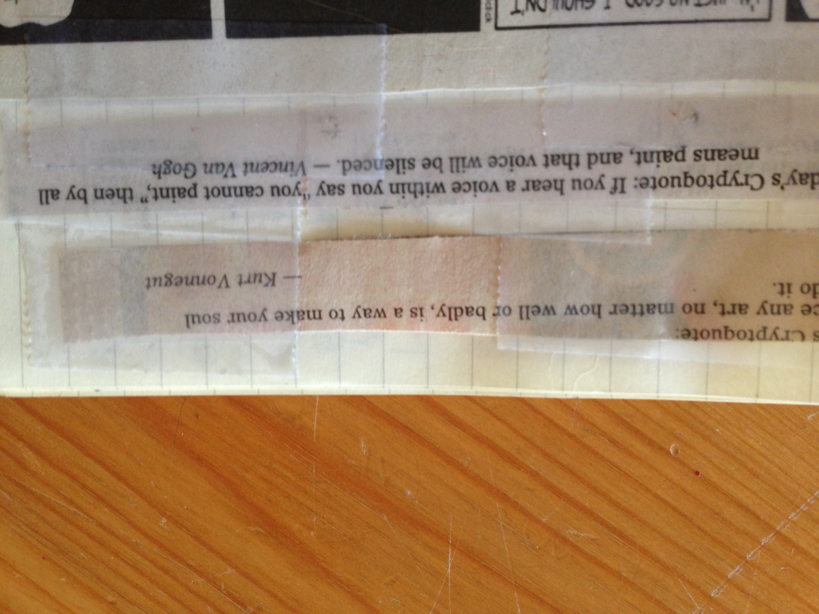 Another Cryptoquote answer made its way into the little book I keep for ideas, notes and inspiration.  This is one clutter-bug habit I will never apologize for.  I love flipping through and getting a jolt of inspiration from the little slivers of paper.