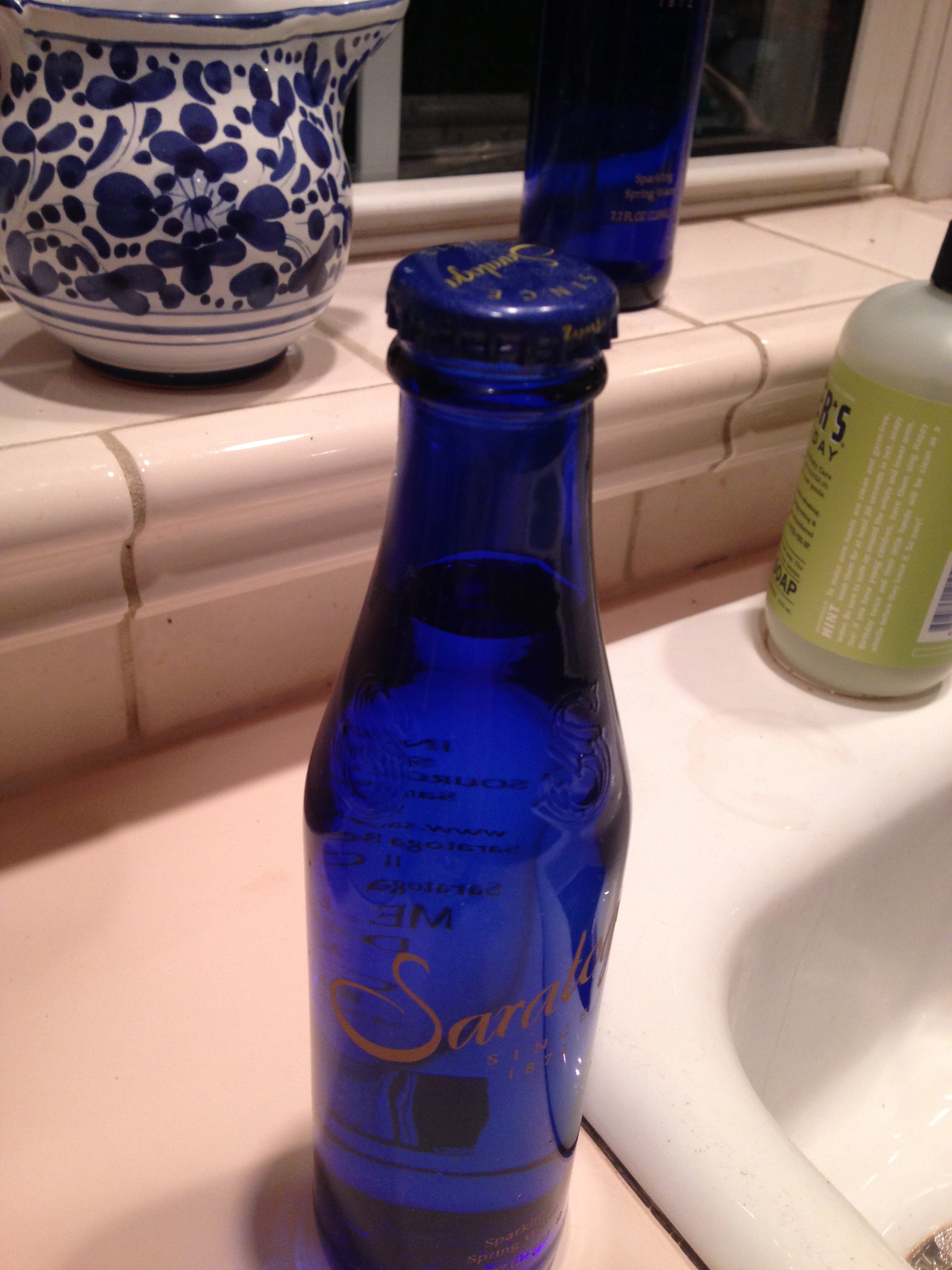 Some items were easy to dispose of, like a bottle of Saratoga water from a trip the whole family took together many years ago. I already had one of my own on the kitchen window sill. It casts a lovely blue light when the sun is shining through.