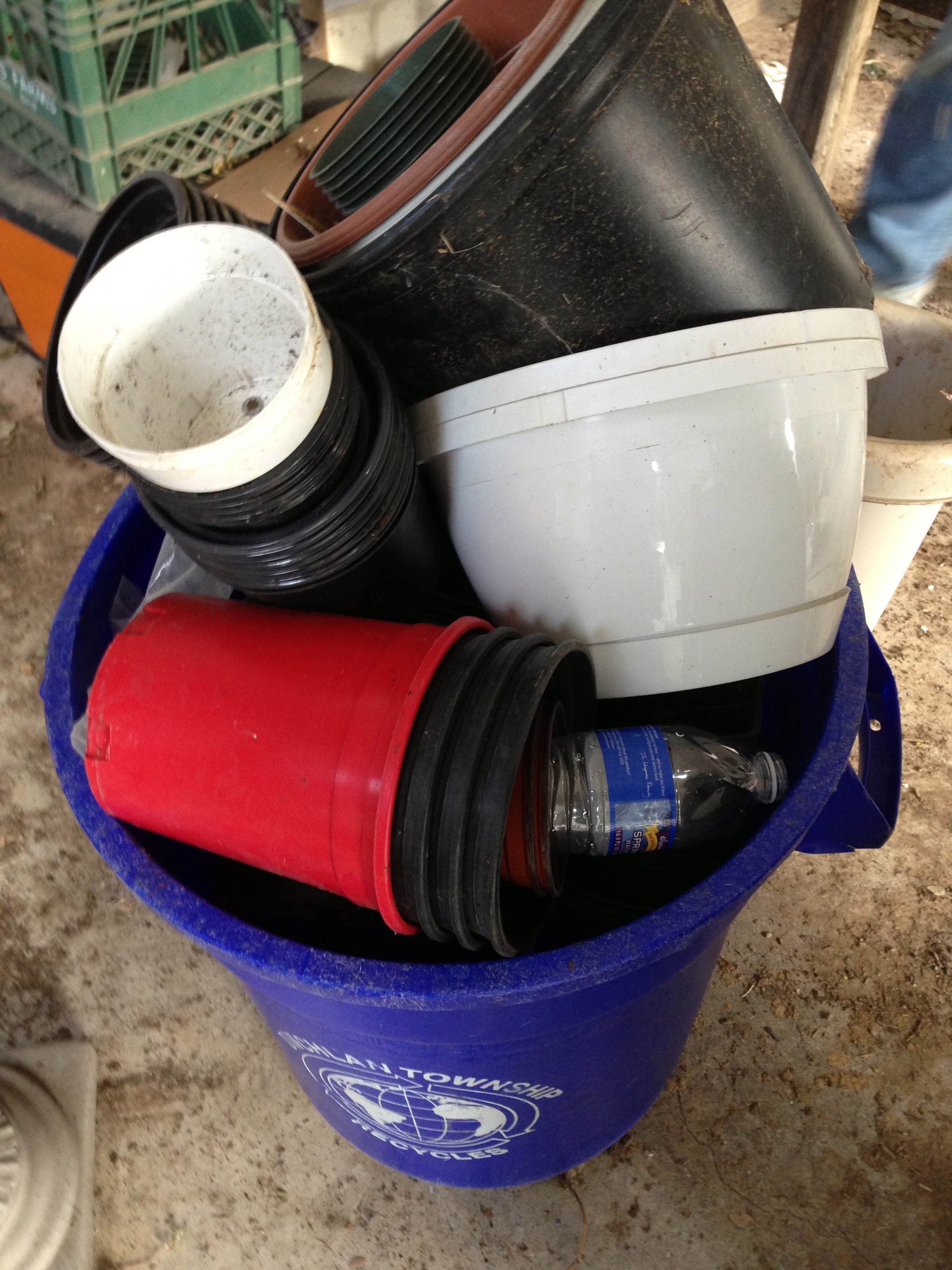The dear man was cleaning out our garage and unearthed a whole bunch of plant pots that I had been meaning to recycle for ages.  Even I was shocked at the number.  I think I started stacking them together when our township recycled only numbers 1 and 2 plastic. Now we can recycle 1 through 7.  Out they go.
