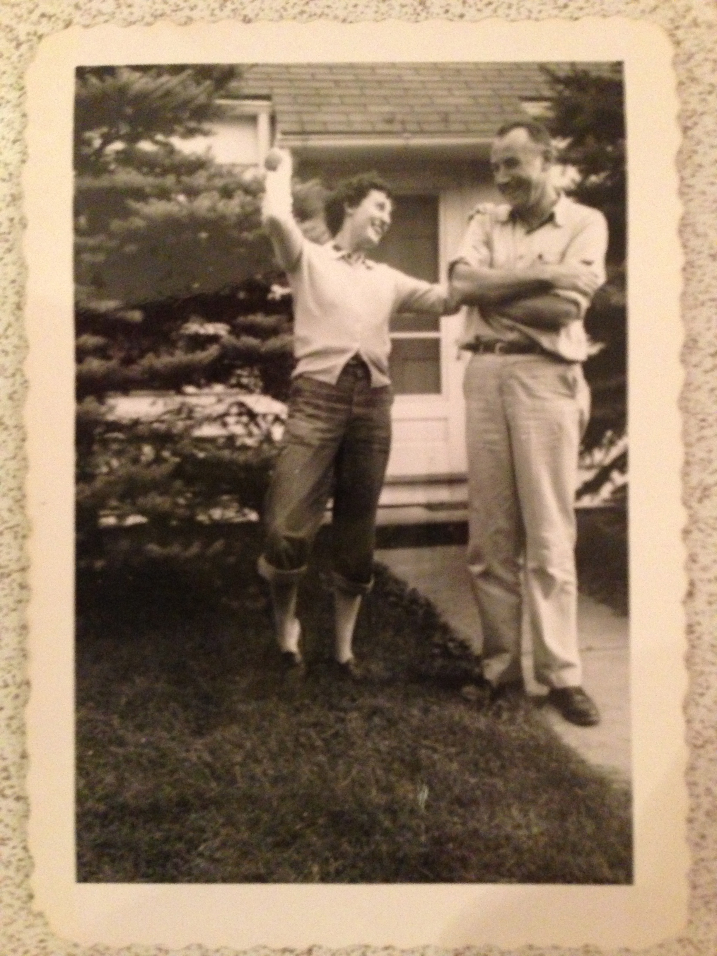 And on an even happier note, I brought the pansy pillow and the album of pictures from previous clumps/posts to my mom today. She was pleased to get them. One of the pictures in the album summed up my parents’ relationship. Two different people (check out the body language) who made a yin-yang-like whole and who truly celebrated life: