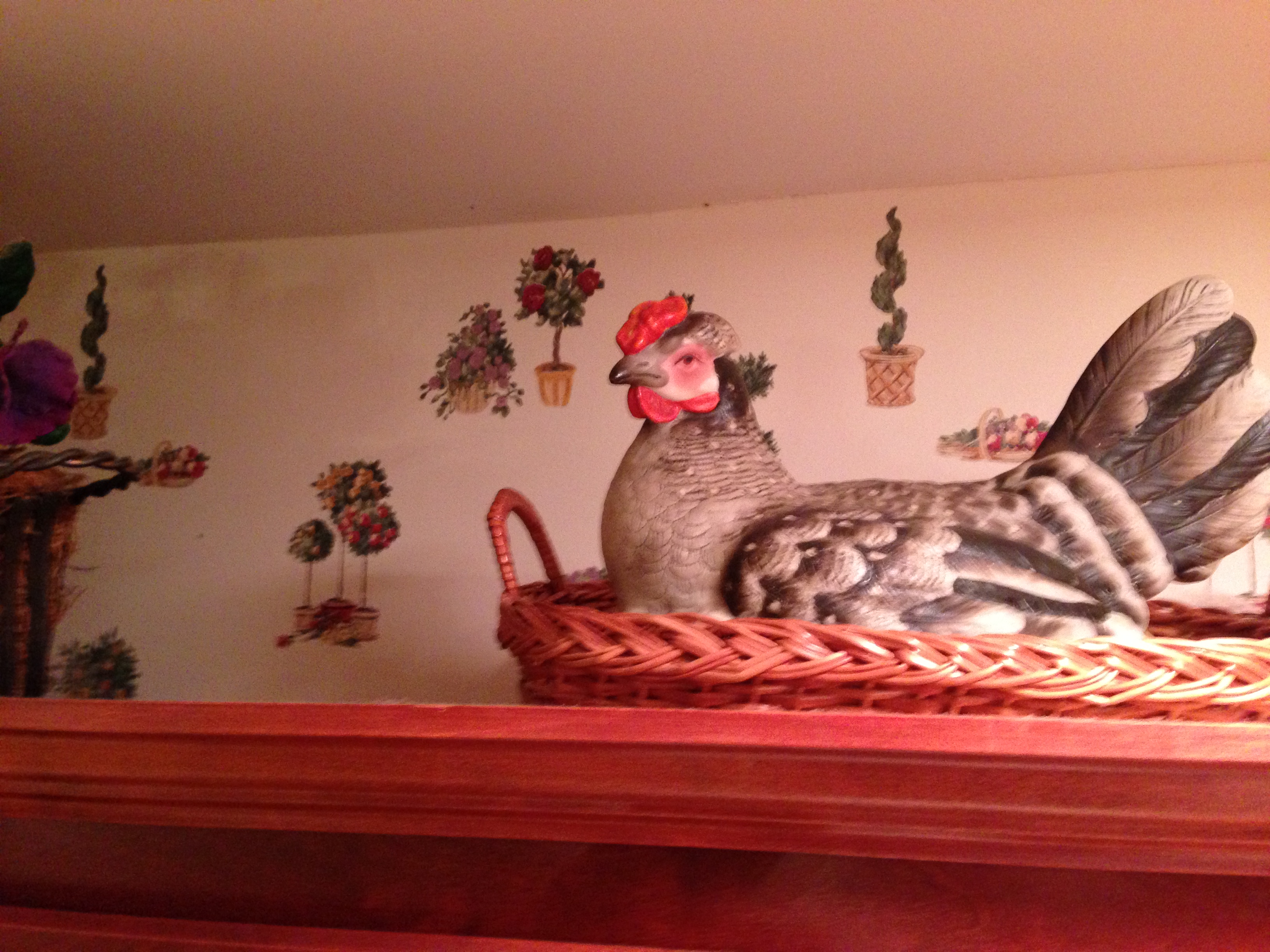 The hen is a family heirloom. My mom always had a thing for hens, and this one would sit in the center of the table at Easter, surrounded by our dyed eggs.