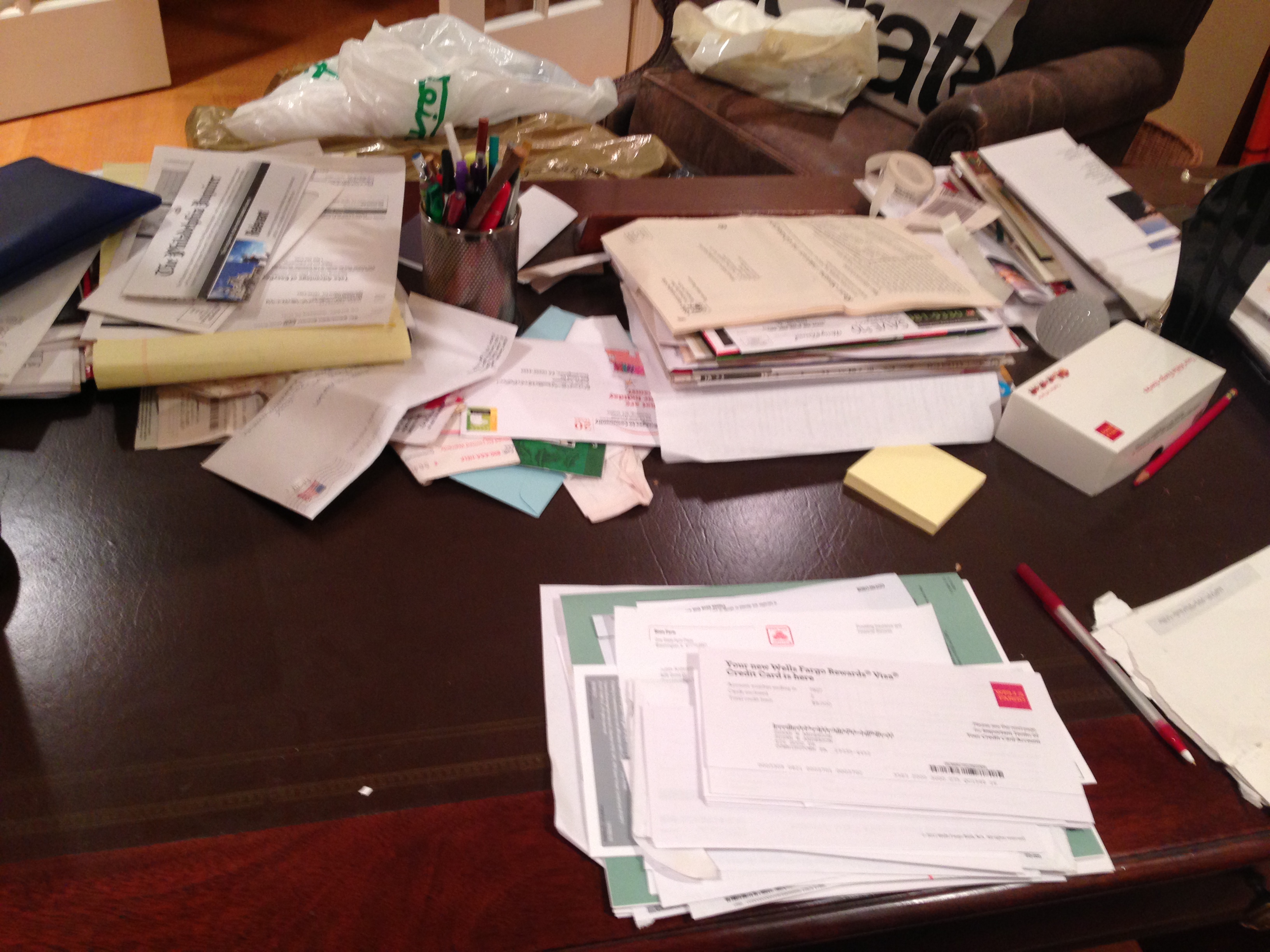 Clump #56: Clear off papers on top of desk in study and whittle down monster paper pile.