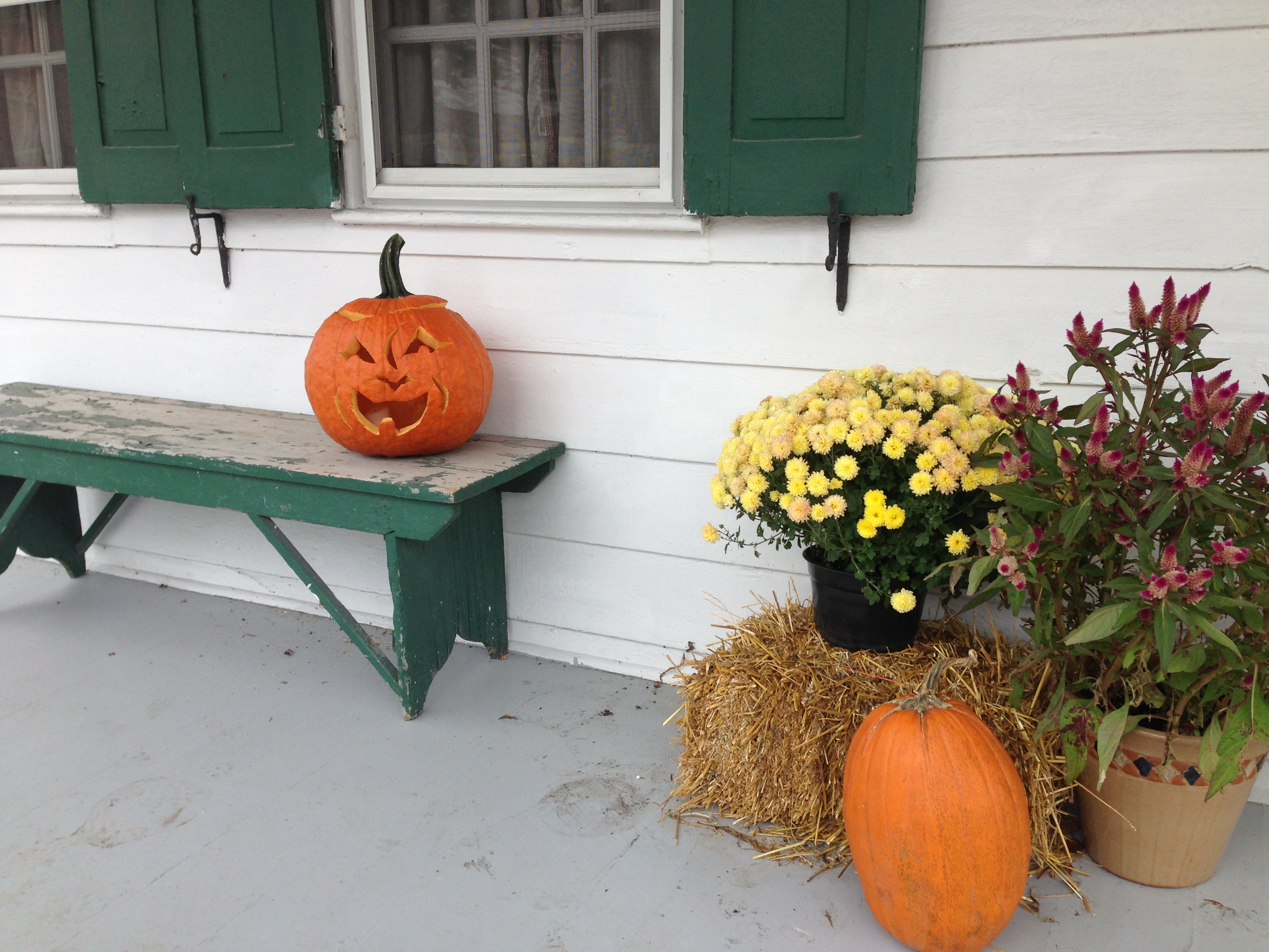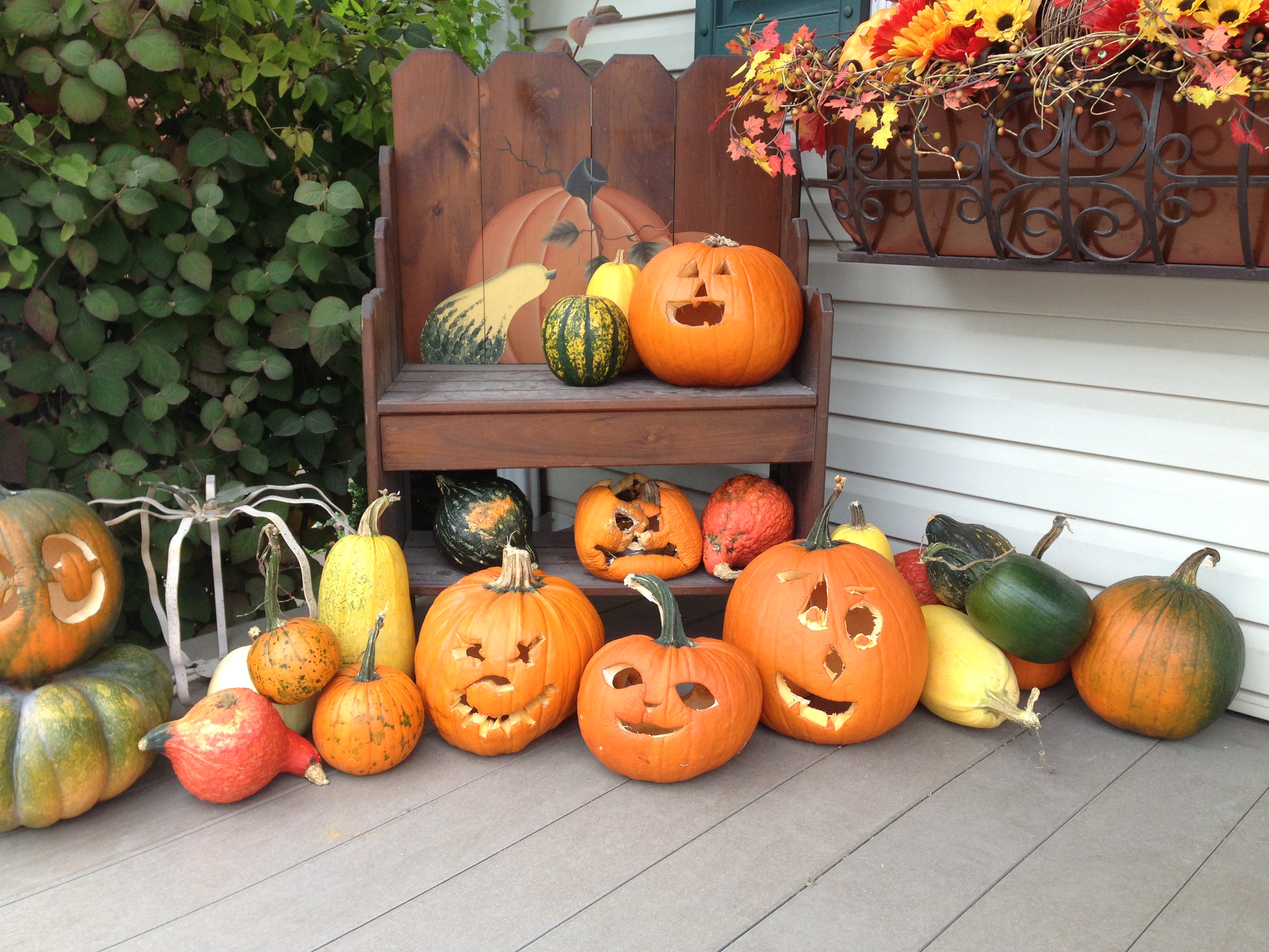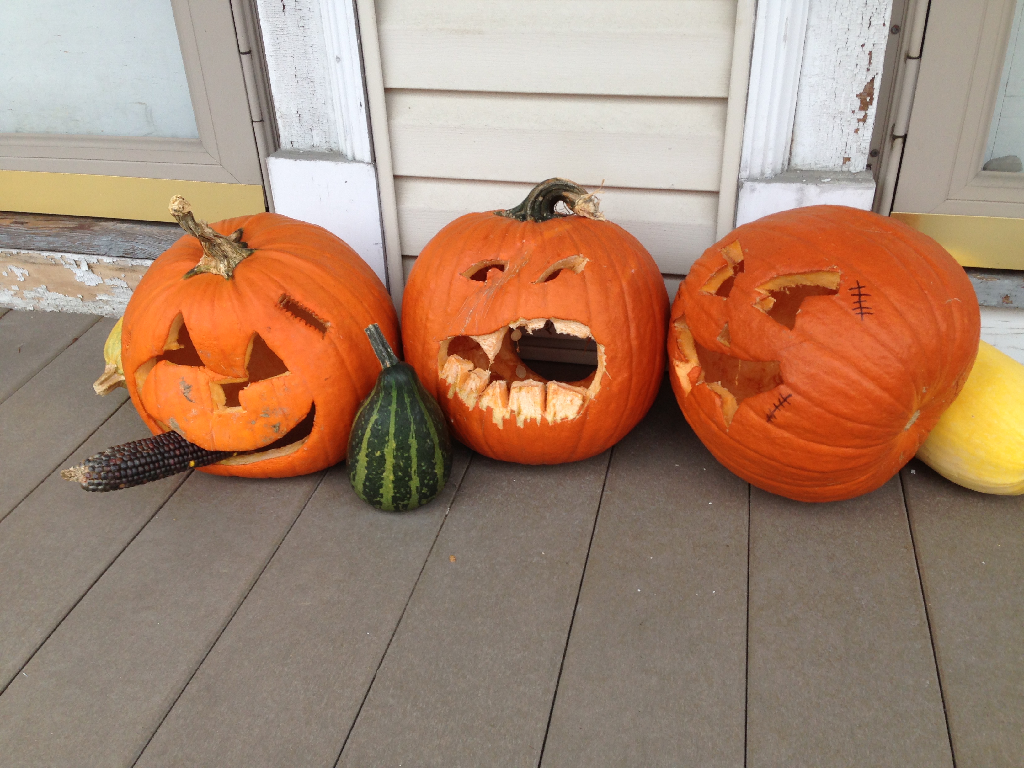 I love the faces pumpkins make when they begin to rot, like the one in the center:
