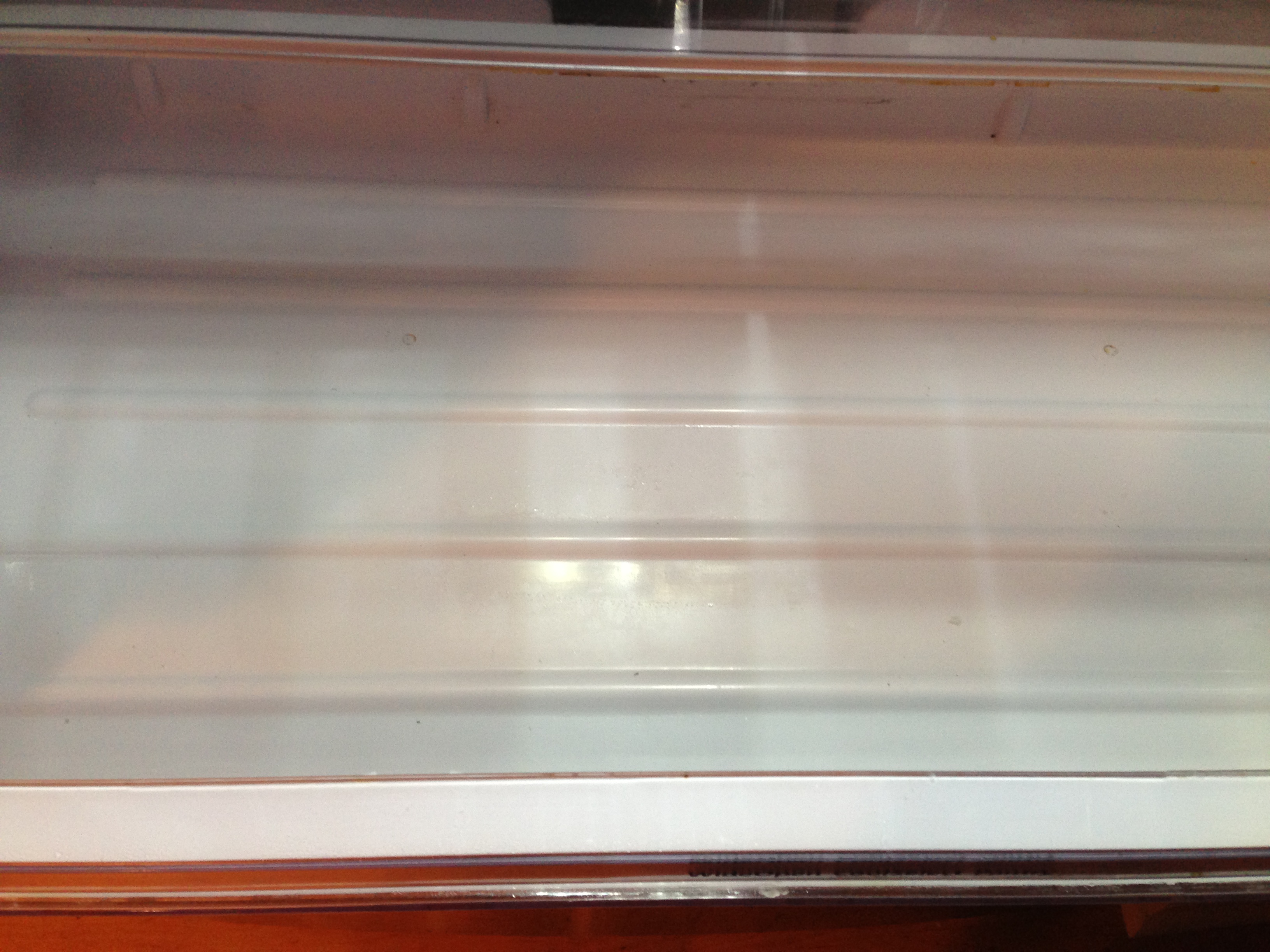 This morning I looked into our blindingly clean fridge, and the foil came off “like buttah.” Hooray!