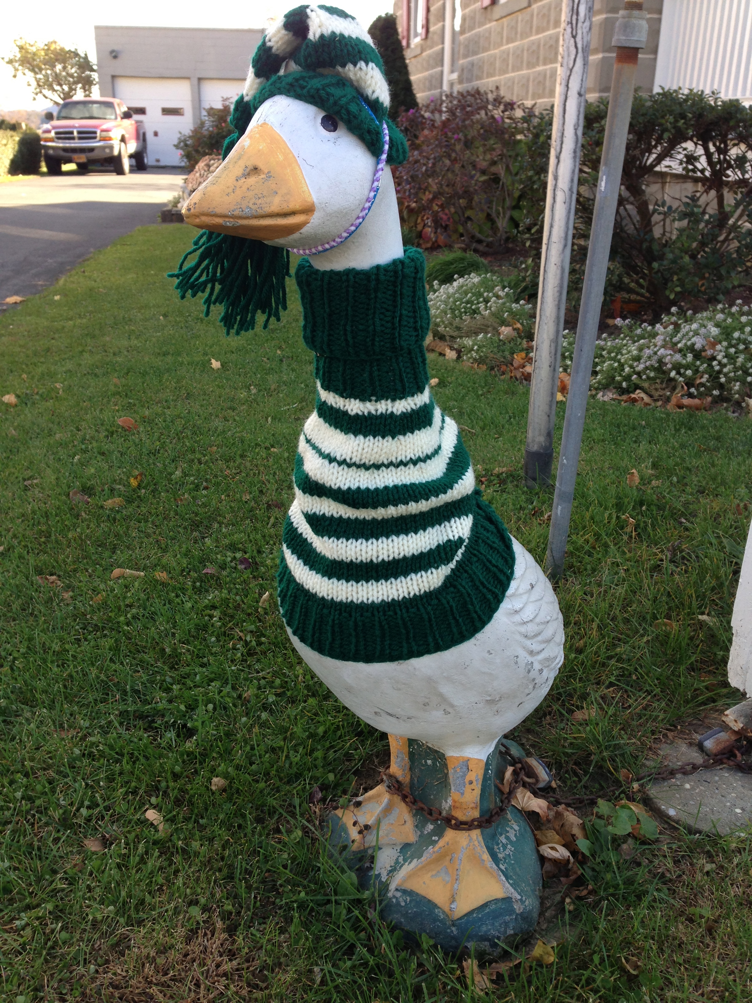 As usual, when driving through Lancaster County, I got onto a photo-taking binge.  Regular readers will recognize this goose in the town of Strasburg, PA, who has different outfits for every season.  She, let’s call her Lucy Goosey, had broken out her woolens.  Highly appropriate for the cold weather we’ve been experiencing.
