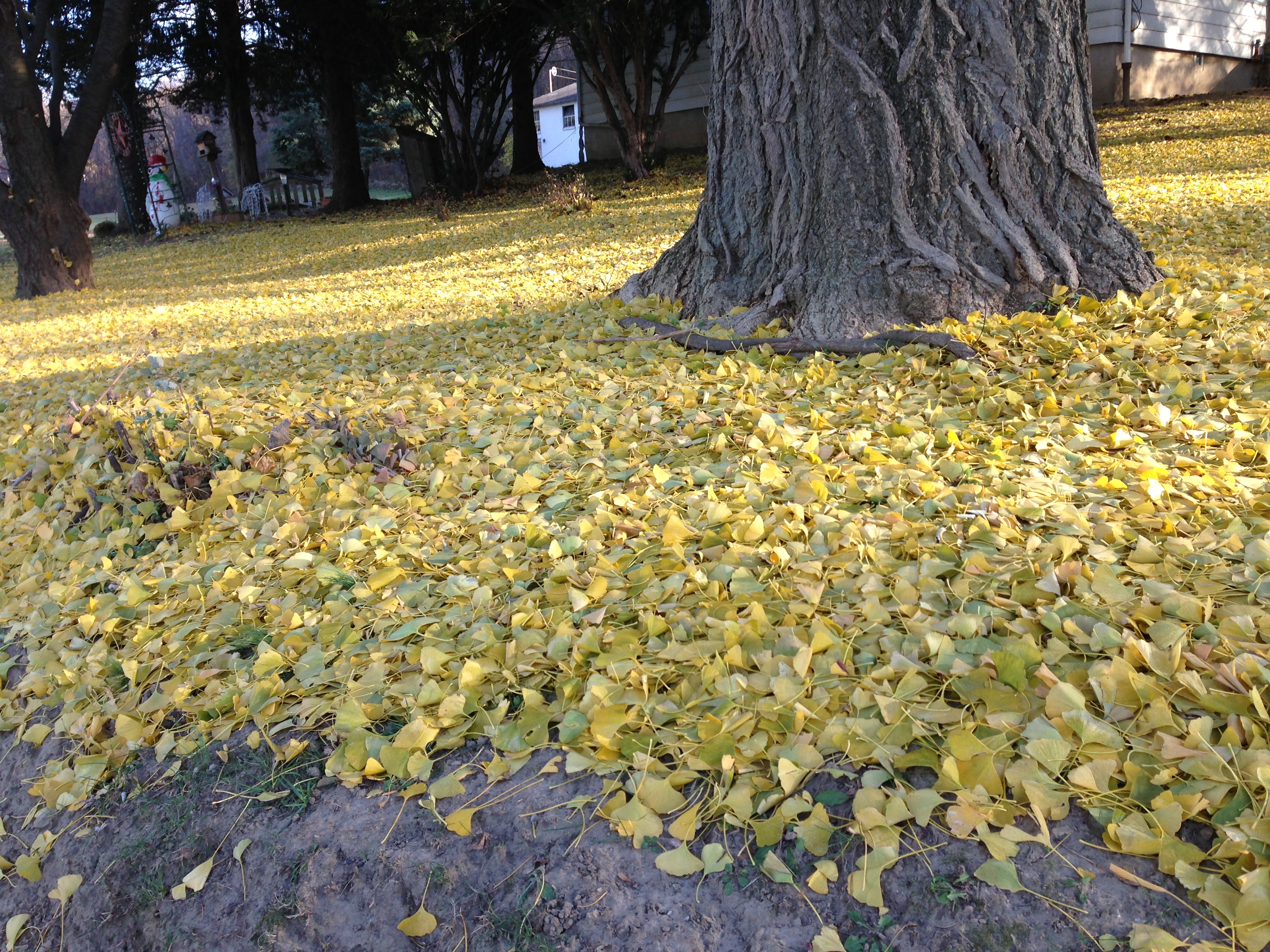 I was taken by a lawn blanketed with fallen ginkgo leaves and a plastic snowman (upper left corner) holding forth.  To capture the photo, I had to pull into a street quite a distance away.  I was pleasantly surprised by a woman who stopped her car and asked whether I needed a ride.  “What wonderful people out here in the country,” I thought.  My rosy-eyed view of the locals quickly changed when a man (non-Amish) came out of the house next door to this one, shouting, “What’s going on?!” with a threatening tone.  I shouted back, “I was just taking a picture.”  He didn’t look satisfied, so I added, “The leaves are so pretty,”  to which he turned and retreated.  I thought, as I high-tailed it out of there, we say “taking,” not “making” a picture for a reason.  An element of trespass is part of the act.