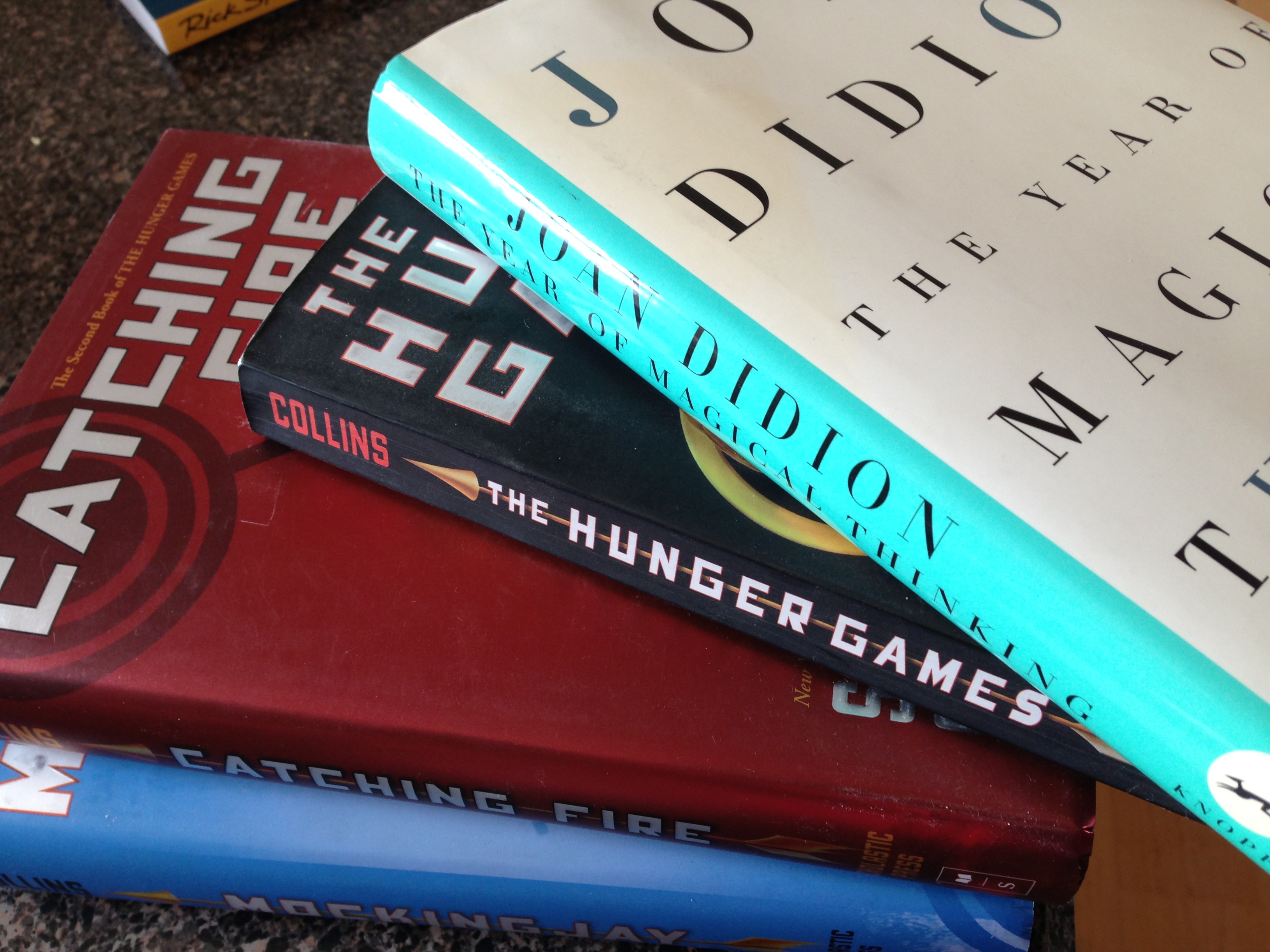 Note to self: books left on the floor are not more likely to be read than books on a shelf.  Here’s the second Hunger Games book, which I mean to read before seeing the movie.  (Have the books been out since the first movie of the series was in theaters?)