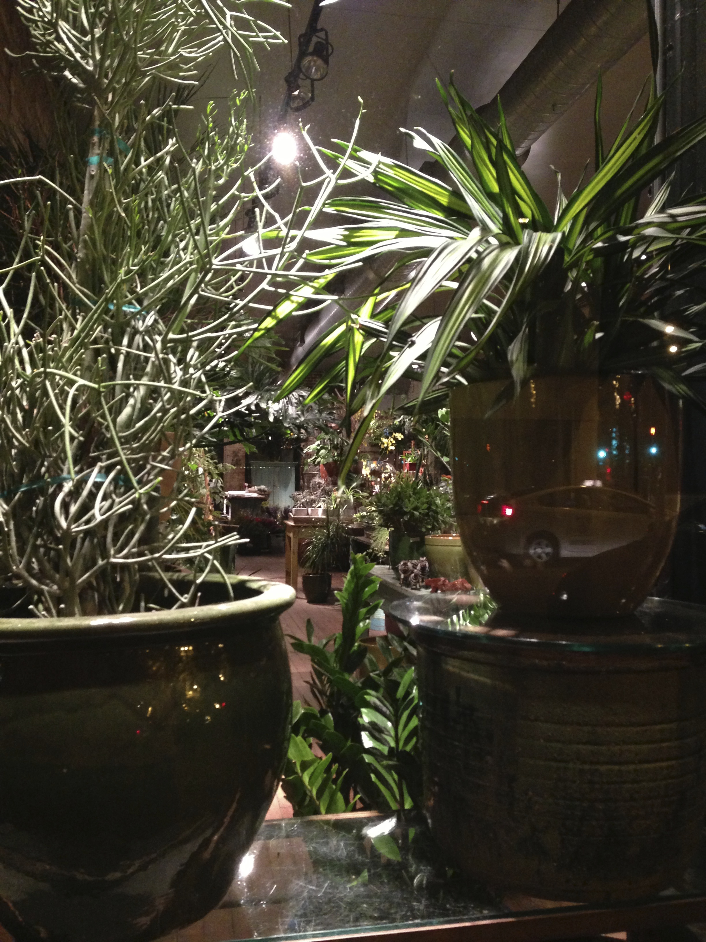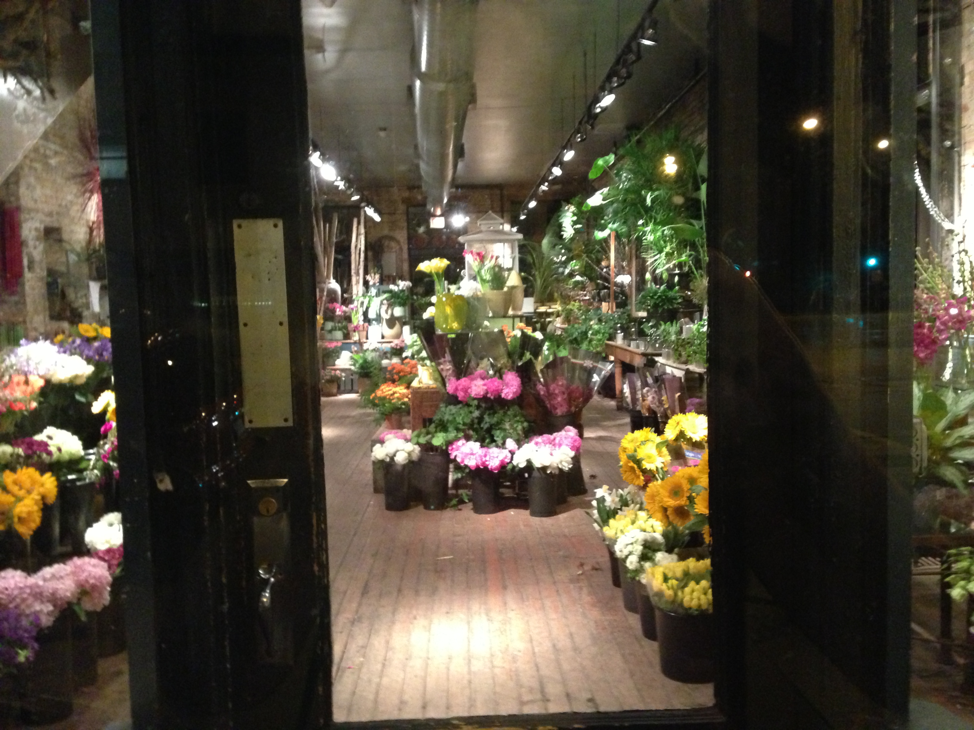I became enchanted with this florist shop while walking in Chicago one night (not our local store, but a Chicagoan’s):