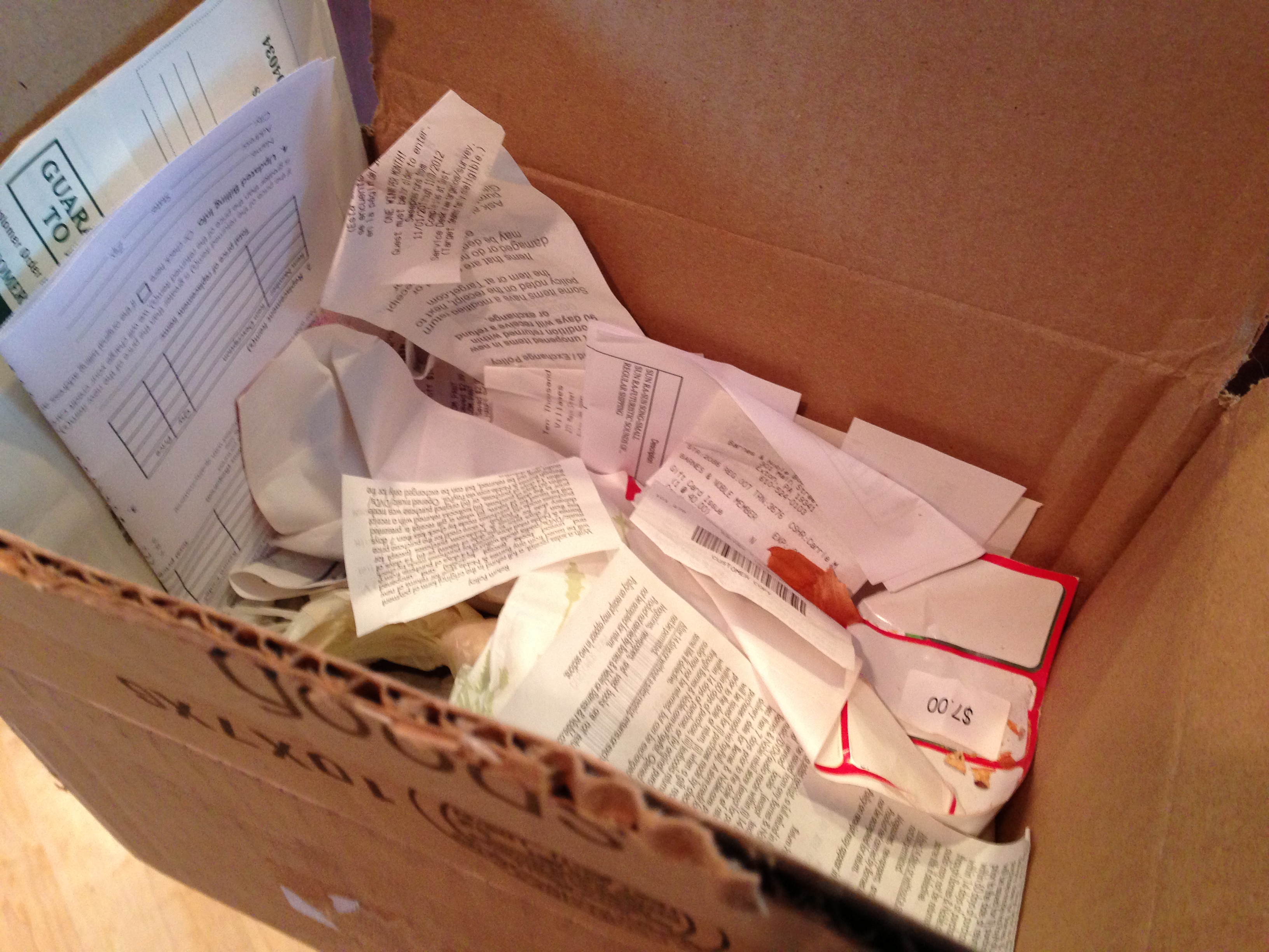 Sometimes (certainly not always), a dreaded task turns out to be not nearly as bad as expected.  This box was a paper tiger, filled with, I’m embarrassed to admit, receipts from last year’s Christmas gifts.  I know exactly how long they’ve been stuffed in there.