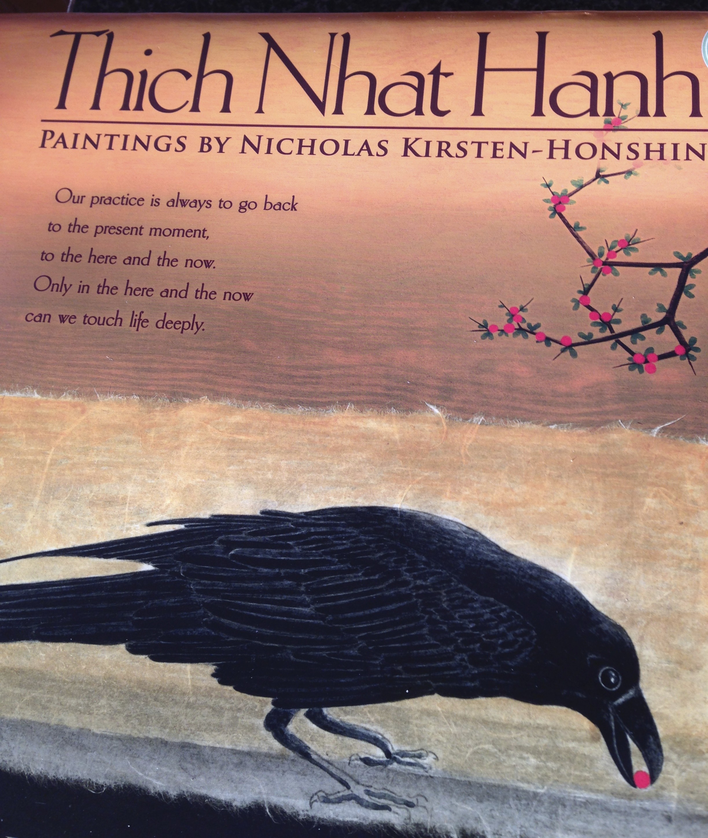 Today I happened to crack open a calendar I bought for next year, one with quotes from Thich Nhat Hanh and beautiful illustrations by Nicholas Kirsten-Honshin.  I had forgotten that the cover was a picture of a bird with a red berry in its beak.