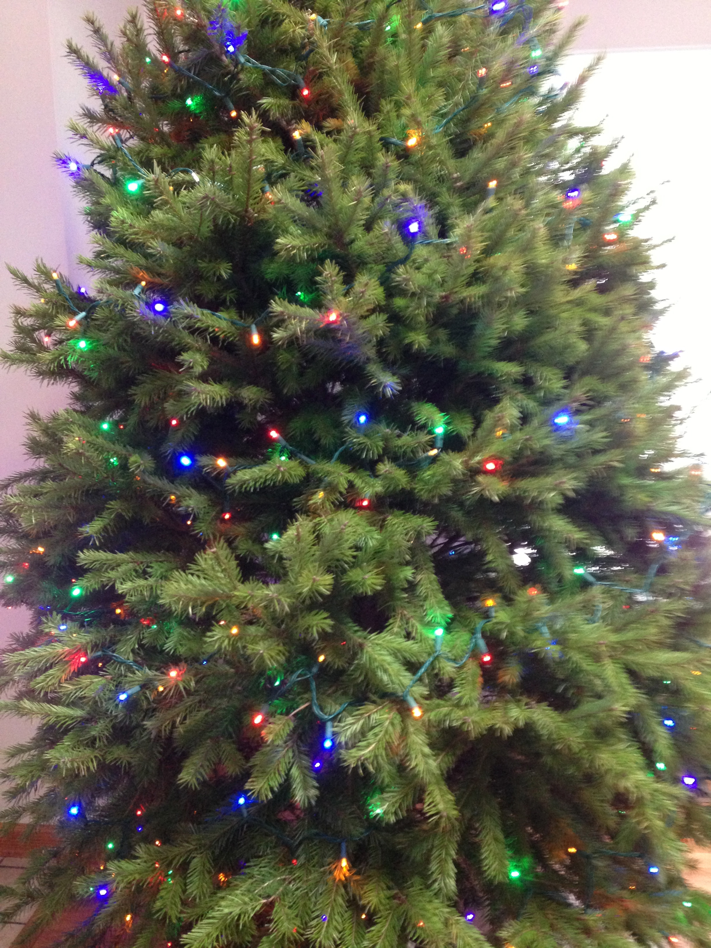 She had a lovely tree set up. Â After putting on the lights, she had found it was so beautiful that she didn’t want to mar it with ornaments. Â So that’s how it will stay for the season.