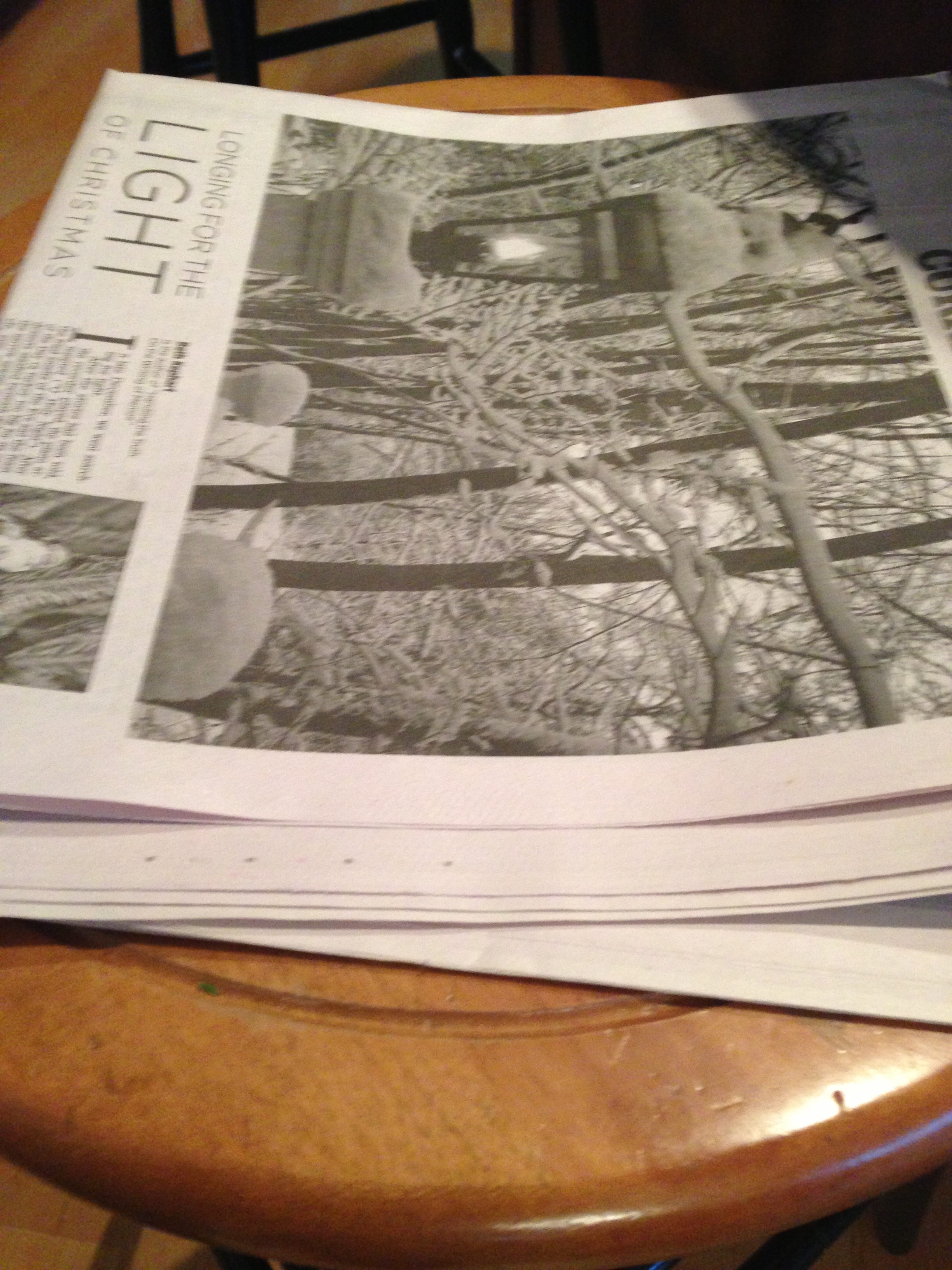I keep remembering a nice, neat woman of a more advanced age who was sitting with me for a little while in the hospital lounge. She spent the time cutting and trimming sewing pattern pieces. I mentioned that her task brought back memories, as I remembered that particular job to be a tedious one (when you just want to get started sewing). She said, “Well, I just hate to waste any time. Especially when you’re my age and you know you don’t have much time left.” So, honoring my own precious time and my daughters, I got to work on a big pile of newspapers.