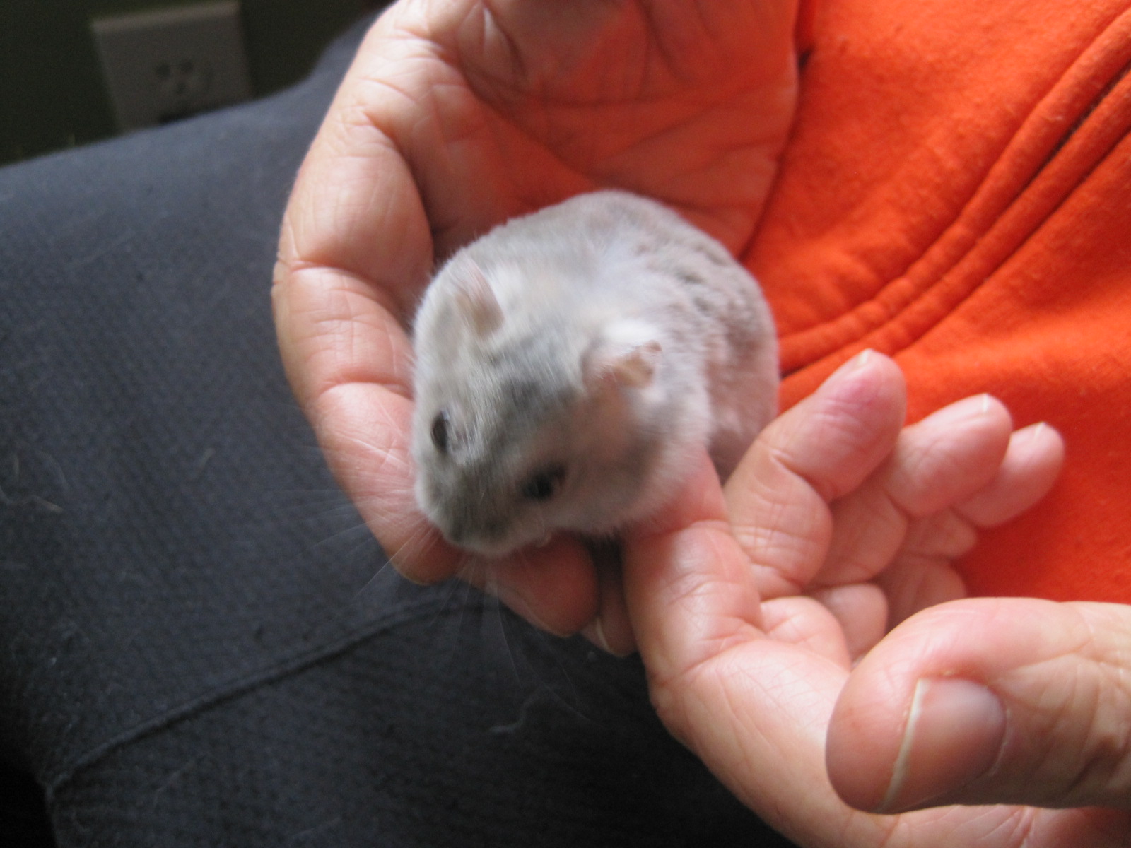 And then there was Steve. The night I got that first dreaded phone call about my mom, my younger daughter was still at home on winter break from college. Before I left in the middle of the night, our daughter alerted us to the fact that her pet hamster, Steve, was making funny noises and didn’t seem to be moving much. After I came back the next day in a haze of despair, she broke the news that Steve had died. Now, normally I tend to forget we even have a hamster in the house. He lived in our younger daughter’s room, and when she started college my husband had taken on the duty of hamster maintenance. Steve lived twice as long as was predicted for a hamster. But the piling on of another sadness, even if small, felt oppressive. Below, Steve in his prime, in the caring hands of my husband: