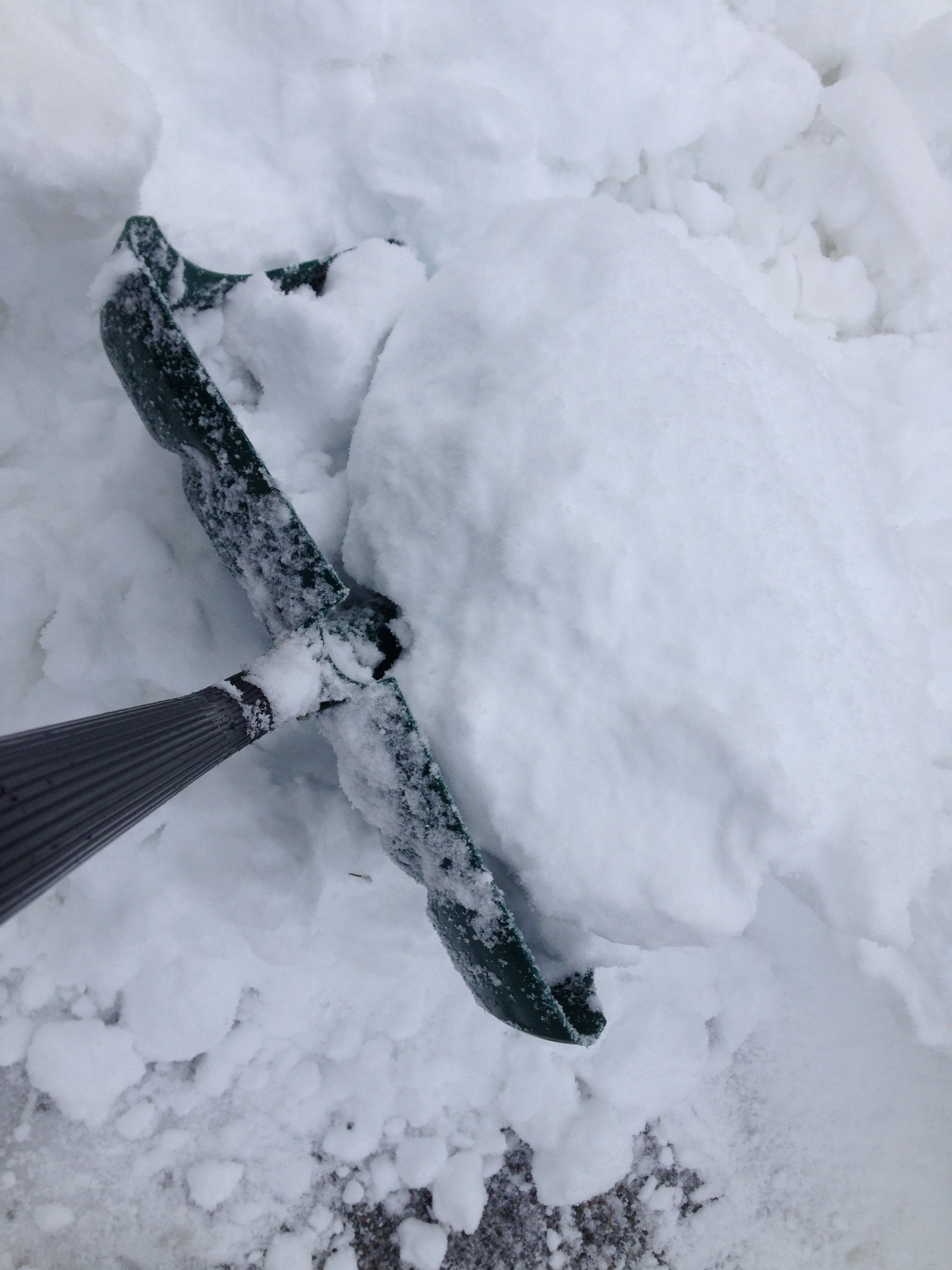 Clump # 144: Clear out little pile number 3 of 28; shovel big clumps of snow.