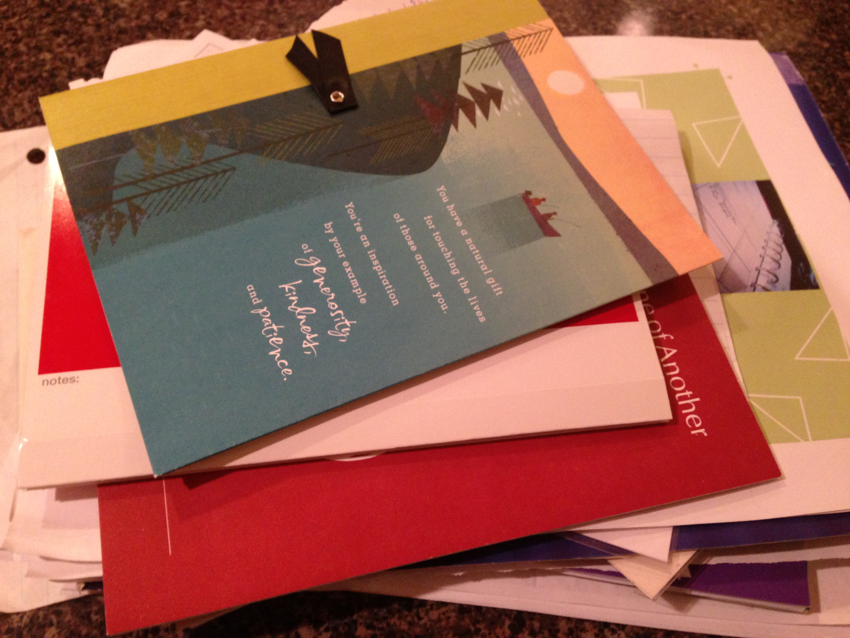 Whoa! This was a tough one. Trying to thin down today’s pile of papers was heart-wrenching. Photos, programs from important events, special cards: