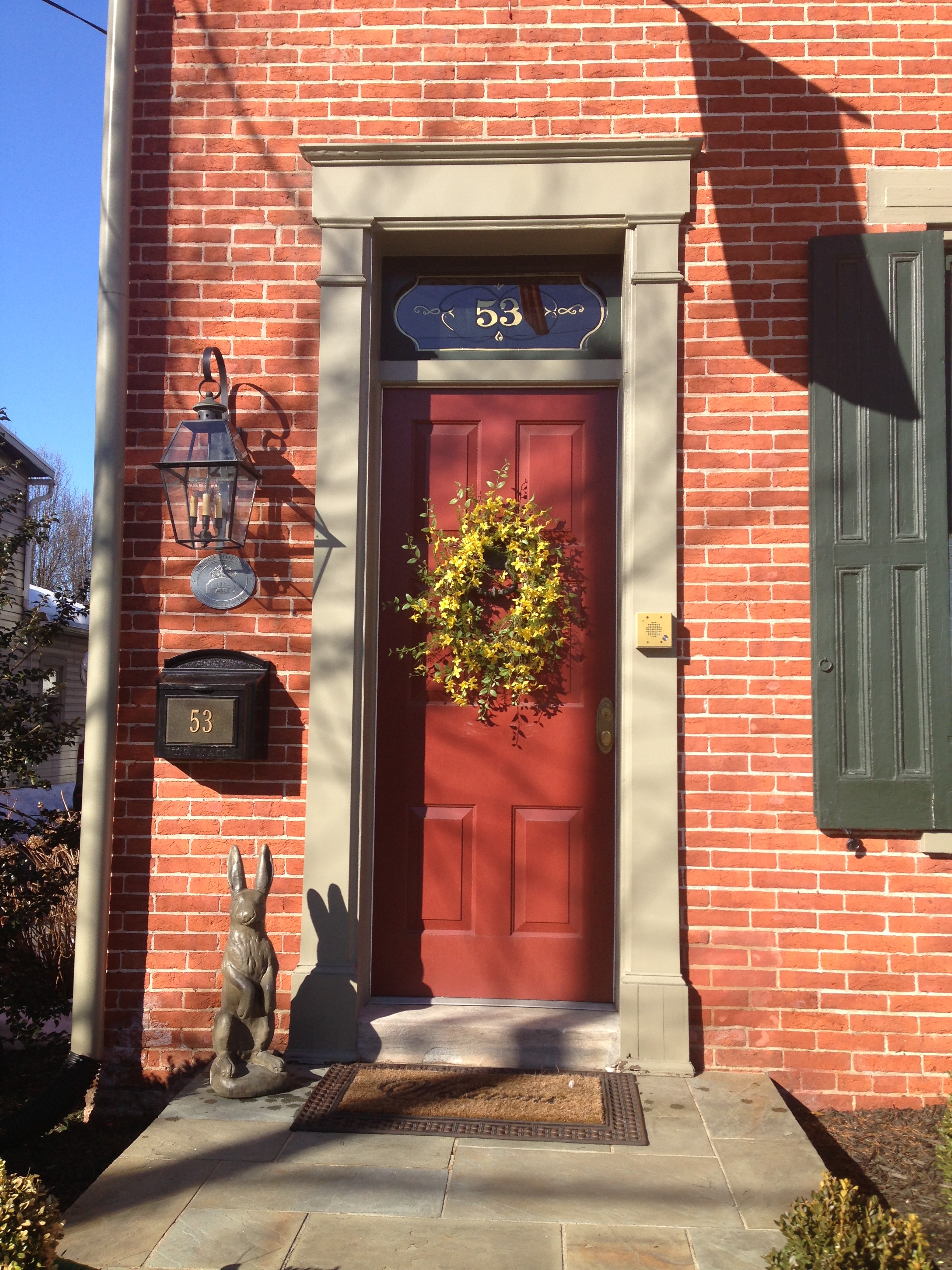 Newsflash:  Spring was in the air and on the front doors of Strasburg today, inspiring the color yellow as the pigment for this post.  Even the Easter Bunny came out to play.