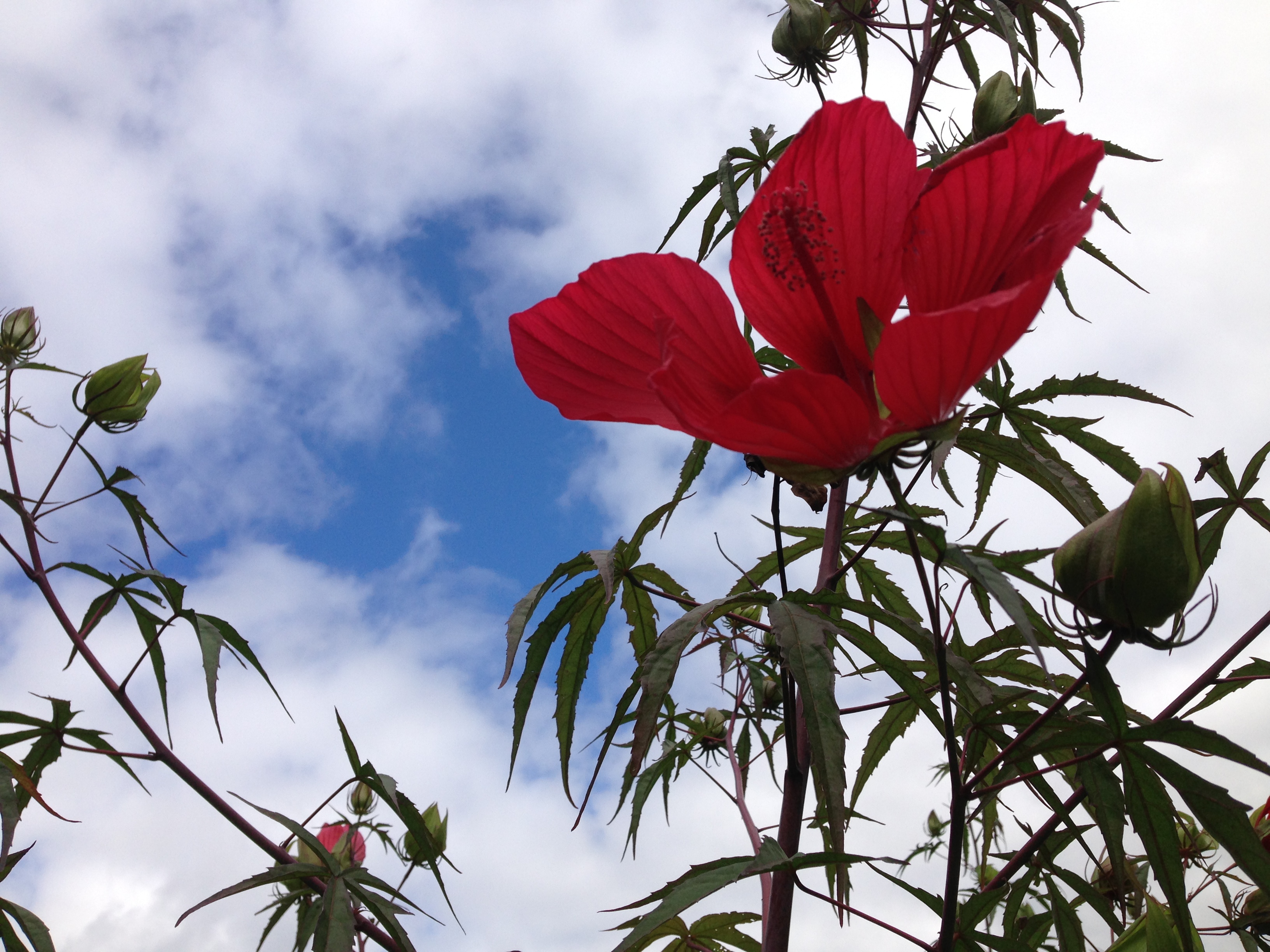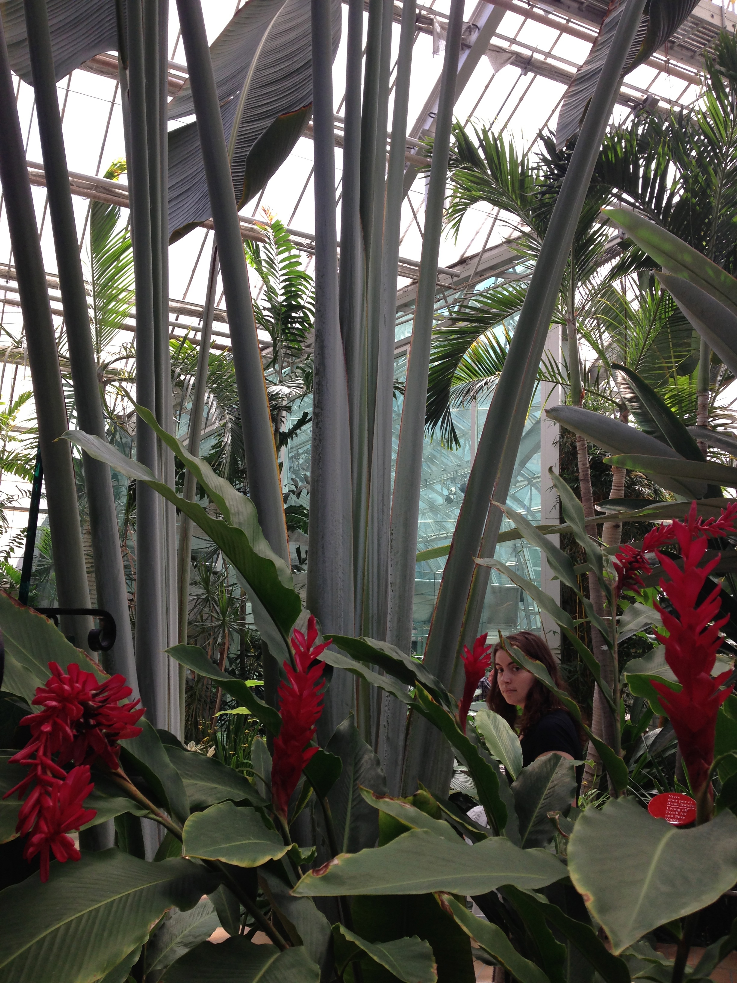 The pigment therapy color for today is red. Below, my younger daughter at the Montreal Biosphere, spotting her mom at it again with the camera. She’s the most beautiful flower of all! (Said with complete objectivity.)