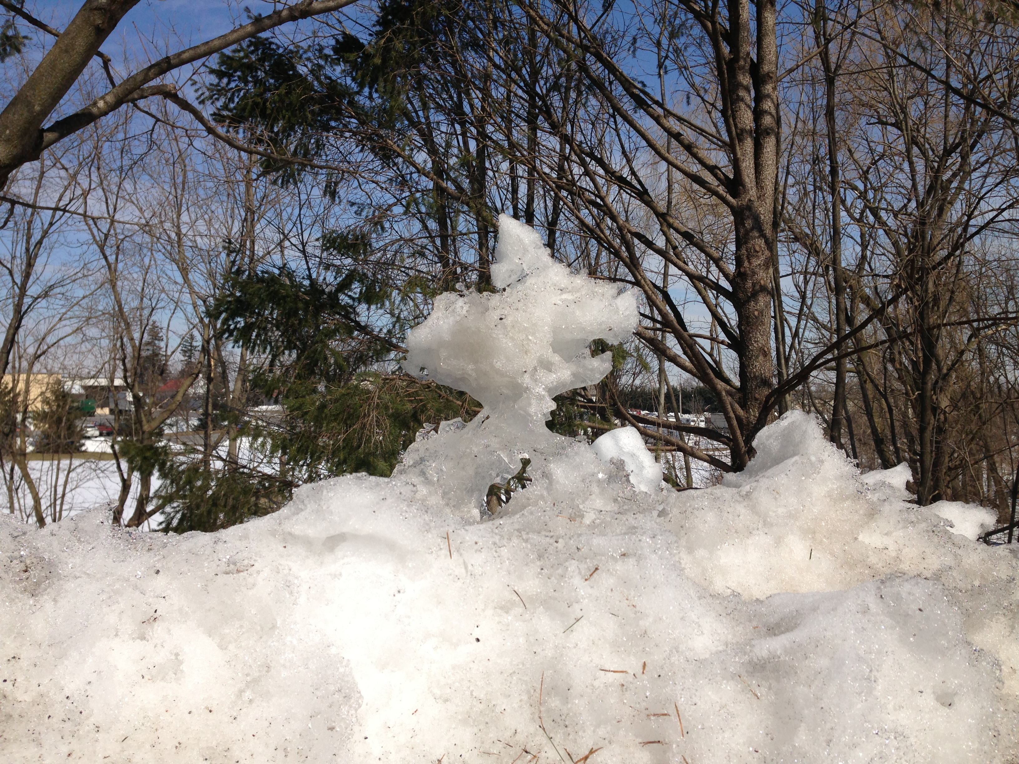 And briefly, here is today’s update on our endless winter. Even the snow is trying to form itself into plants and trees: