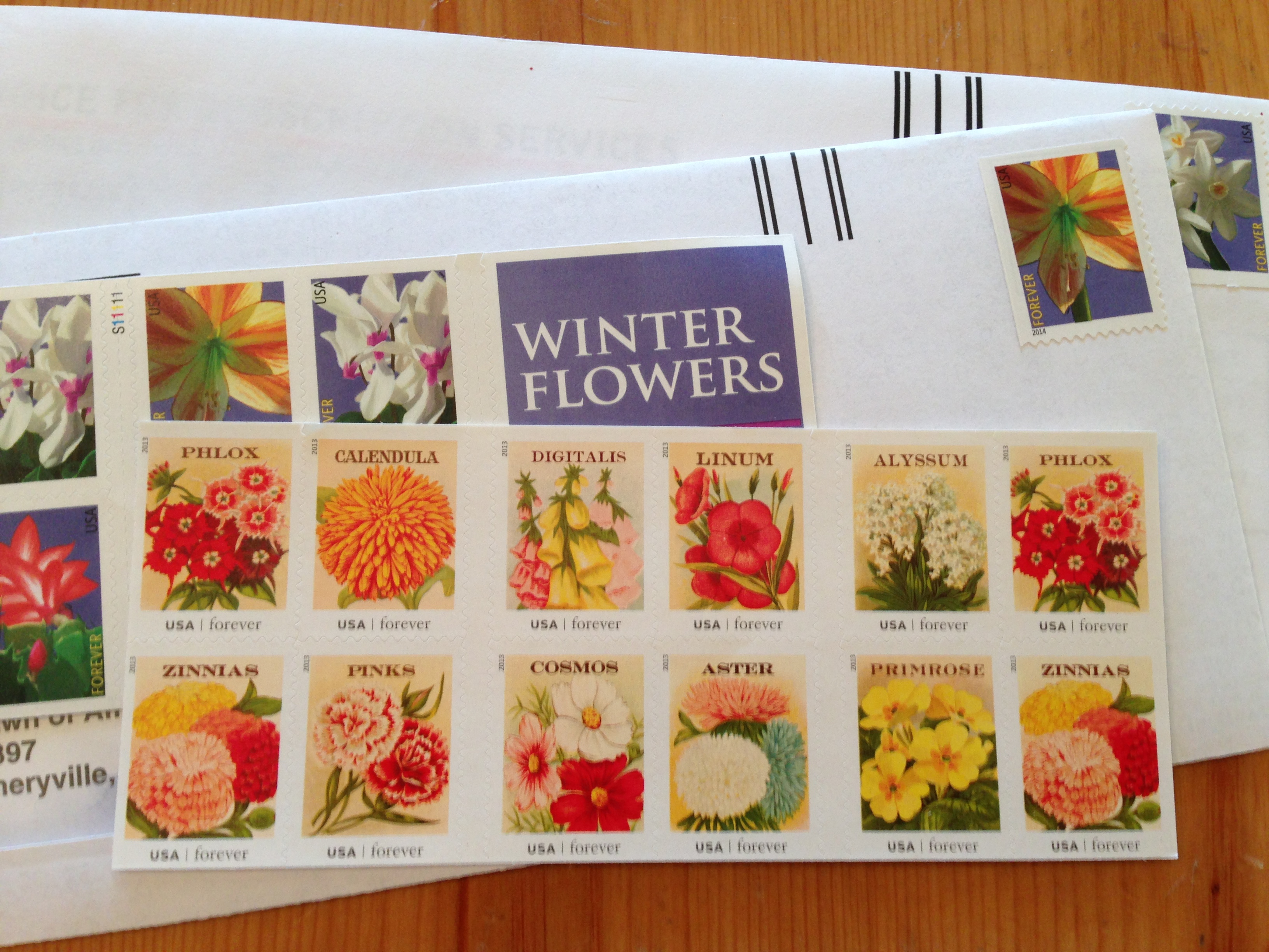 While at the post office I asked if they had any pretty stamps.  The postmaster showed me these flowery ones.  I had to get both: