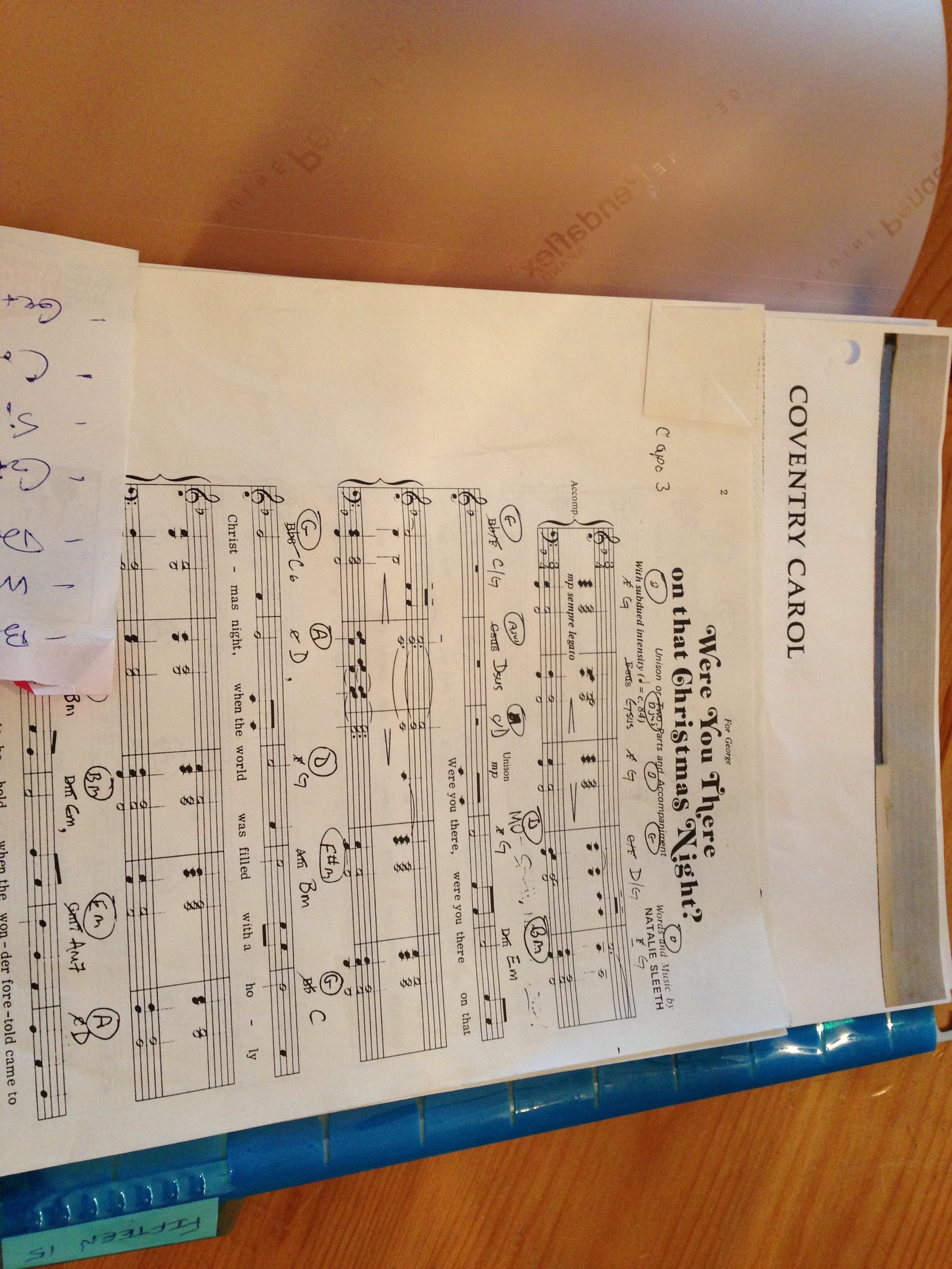 Today’s folder contained a couple of Christmas carols that my younger daughter had found in a whirlwind of room cleaning.  I know just where to put them!  And, even better, I’ll know just where to find them next December.