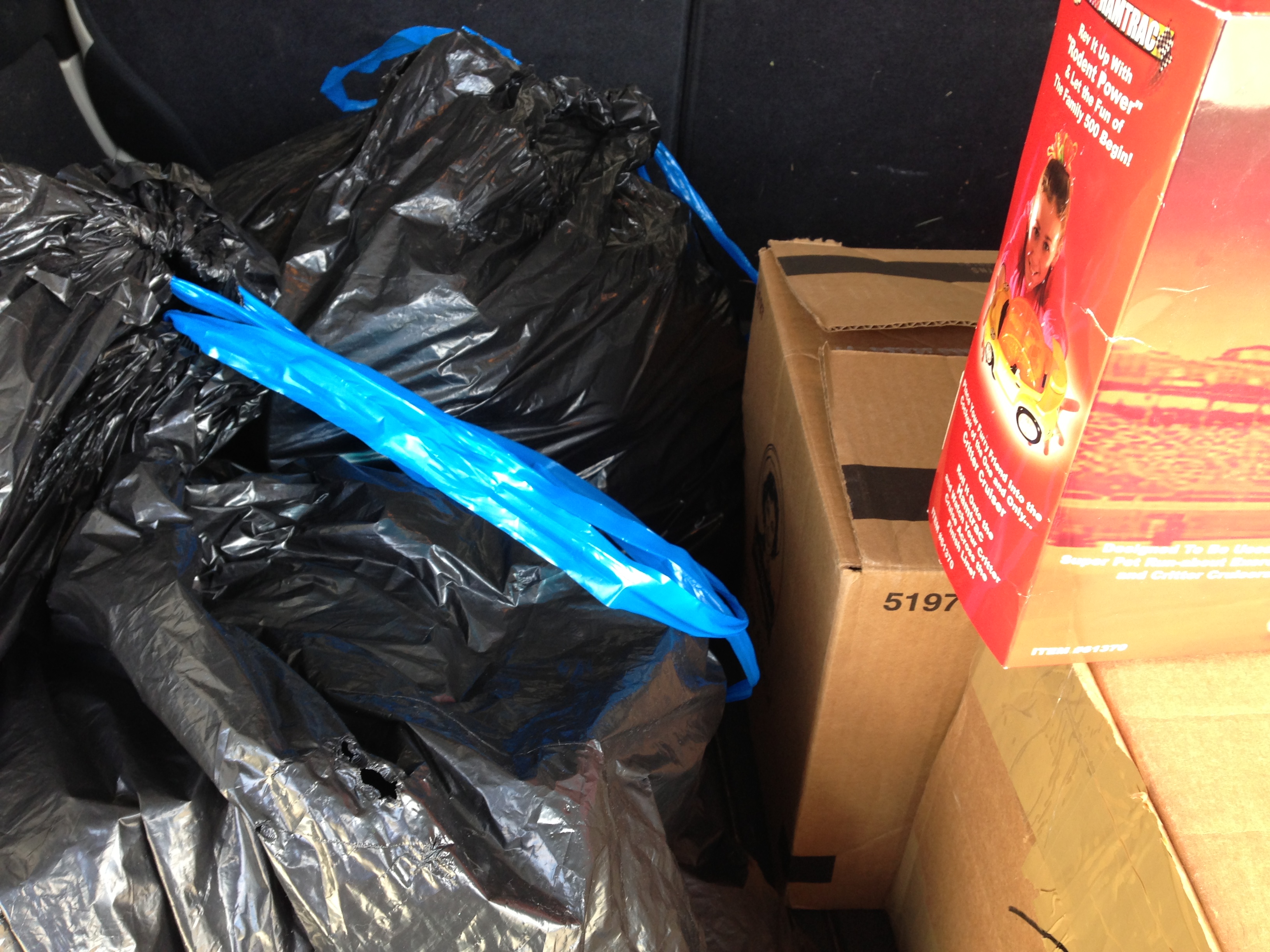 On today’s list was a trip to the Goodwill.  My husband had weeded a bunch of clothes out of his closet , and my younger daughter was galvanized to do the same, adding books and other sundry items …