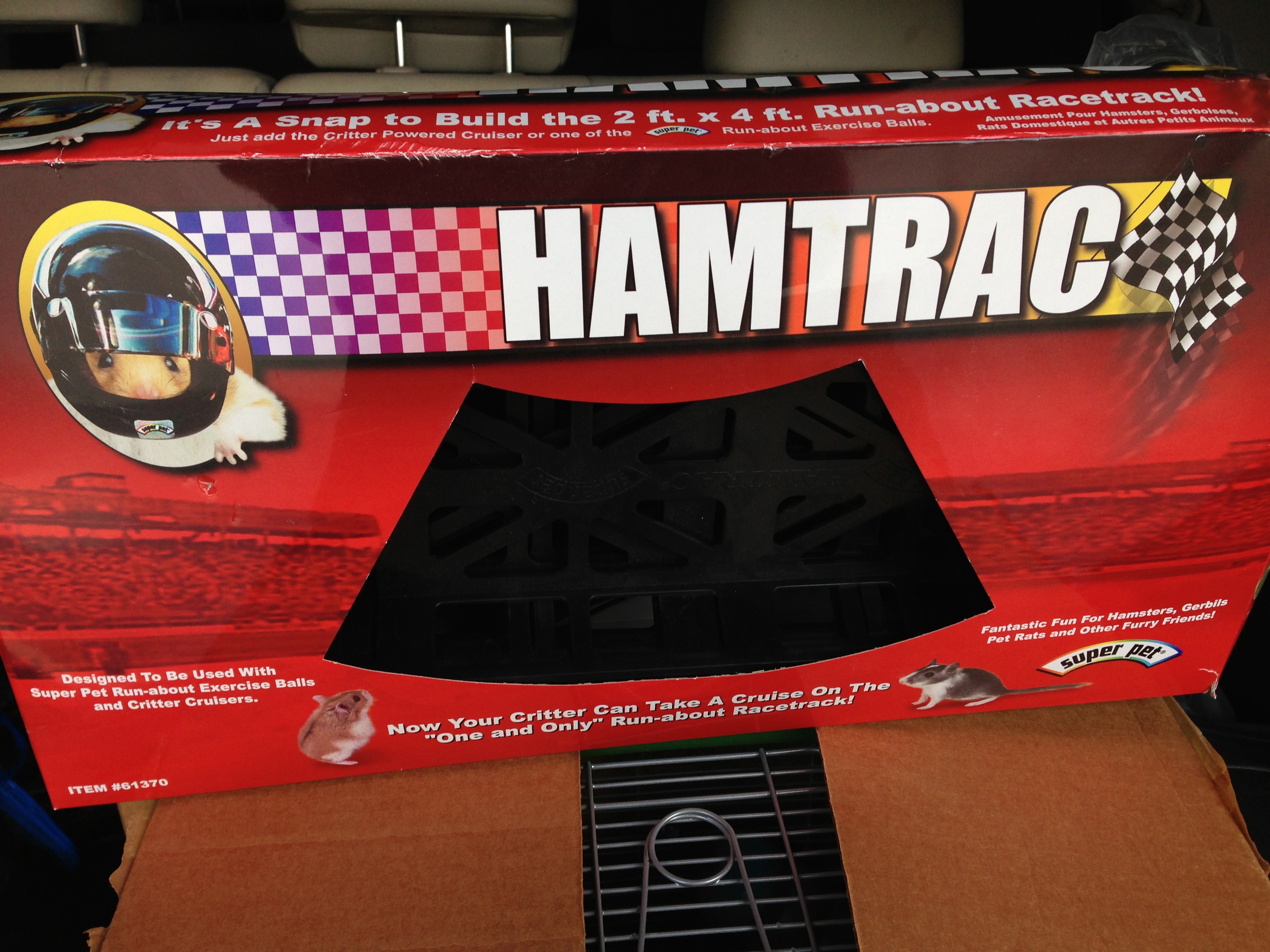 including the cage and hamster toys for her dearly departed hamster, Steve.  I had no idea he had a “HAMTRAC.”