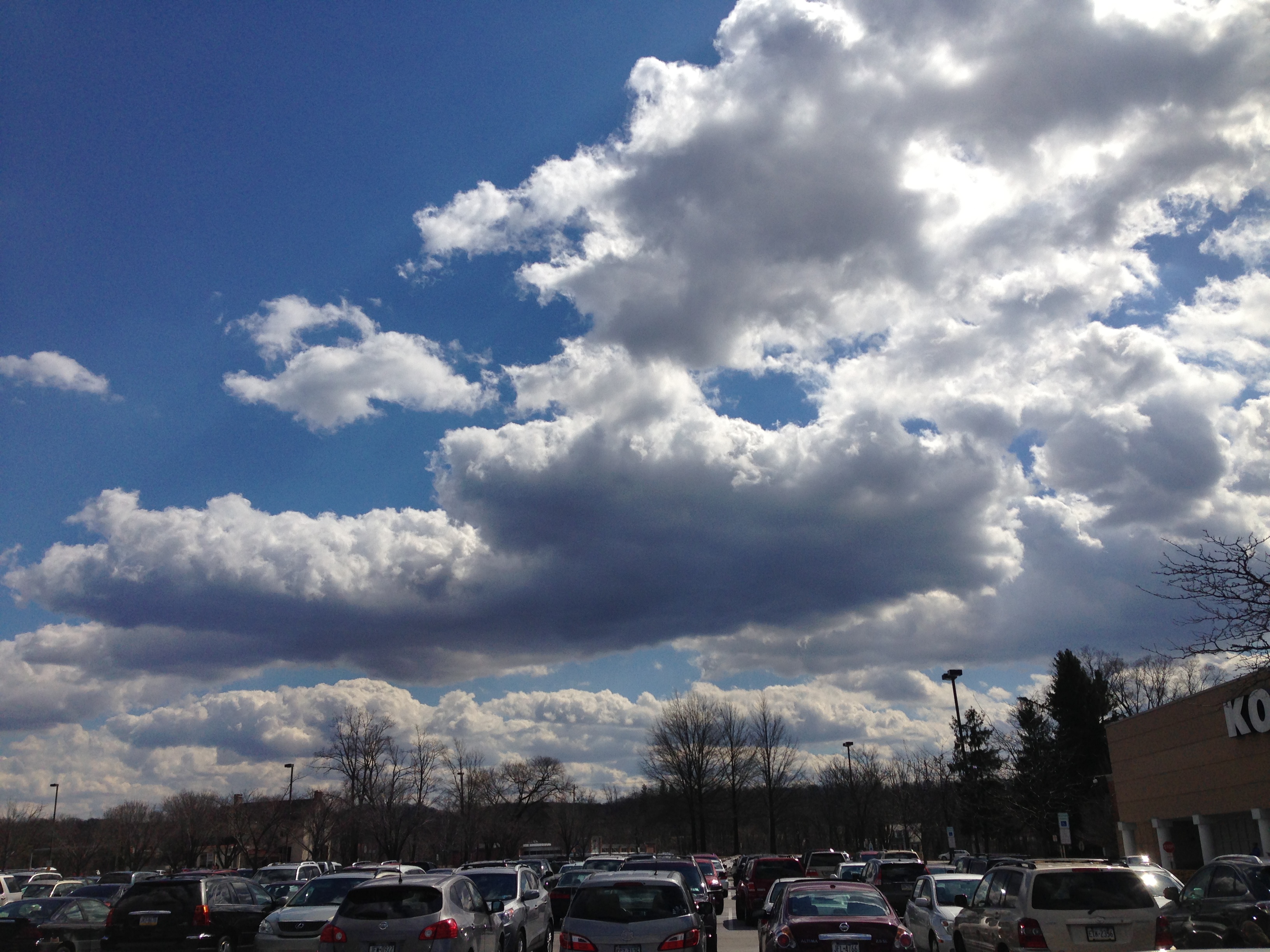 warmer temperatures, bright blue sky, and puffy clouds like bright white linens snapping in the breeze.
