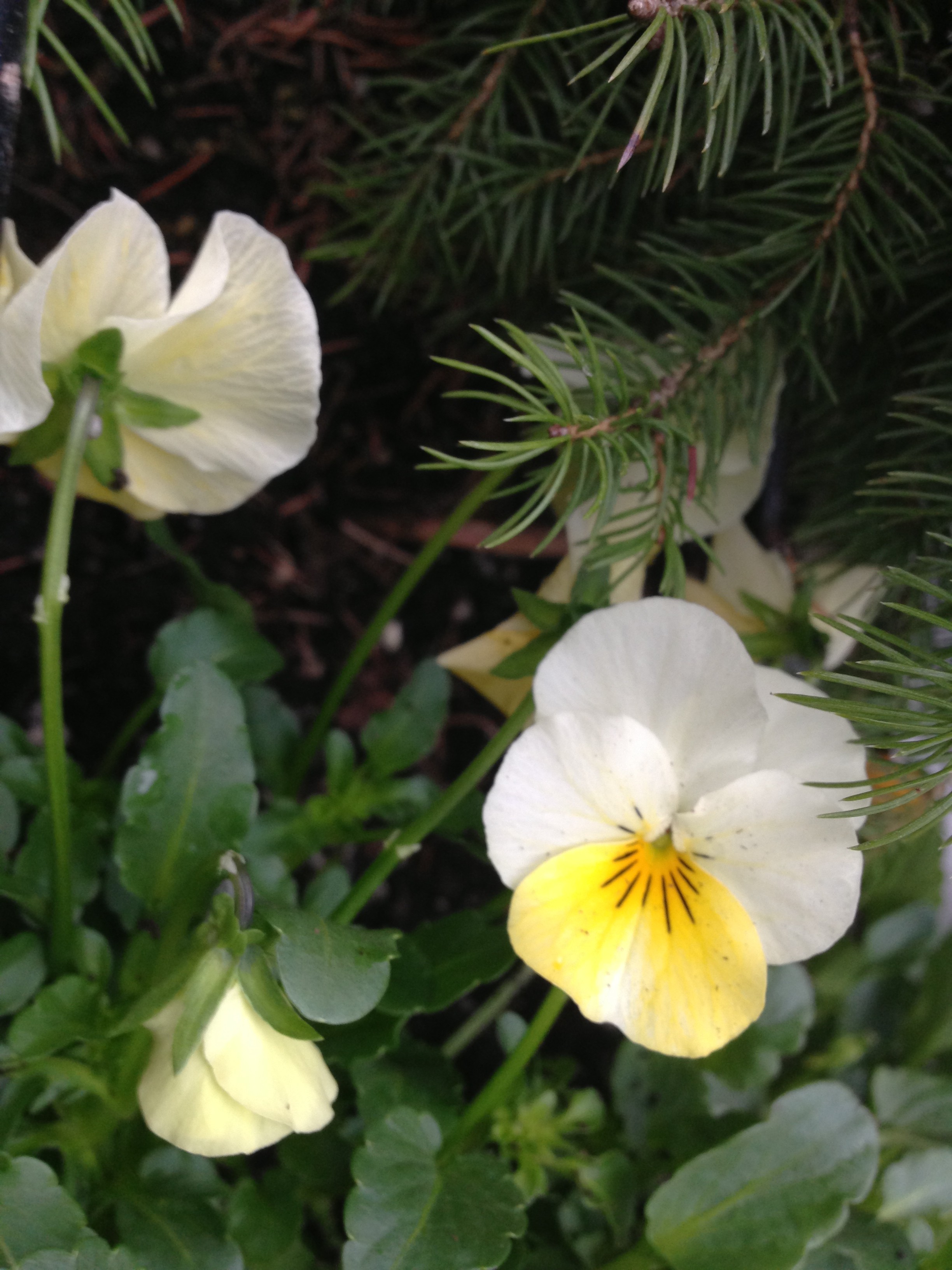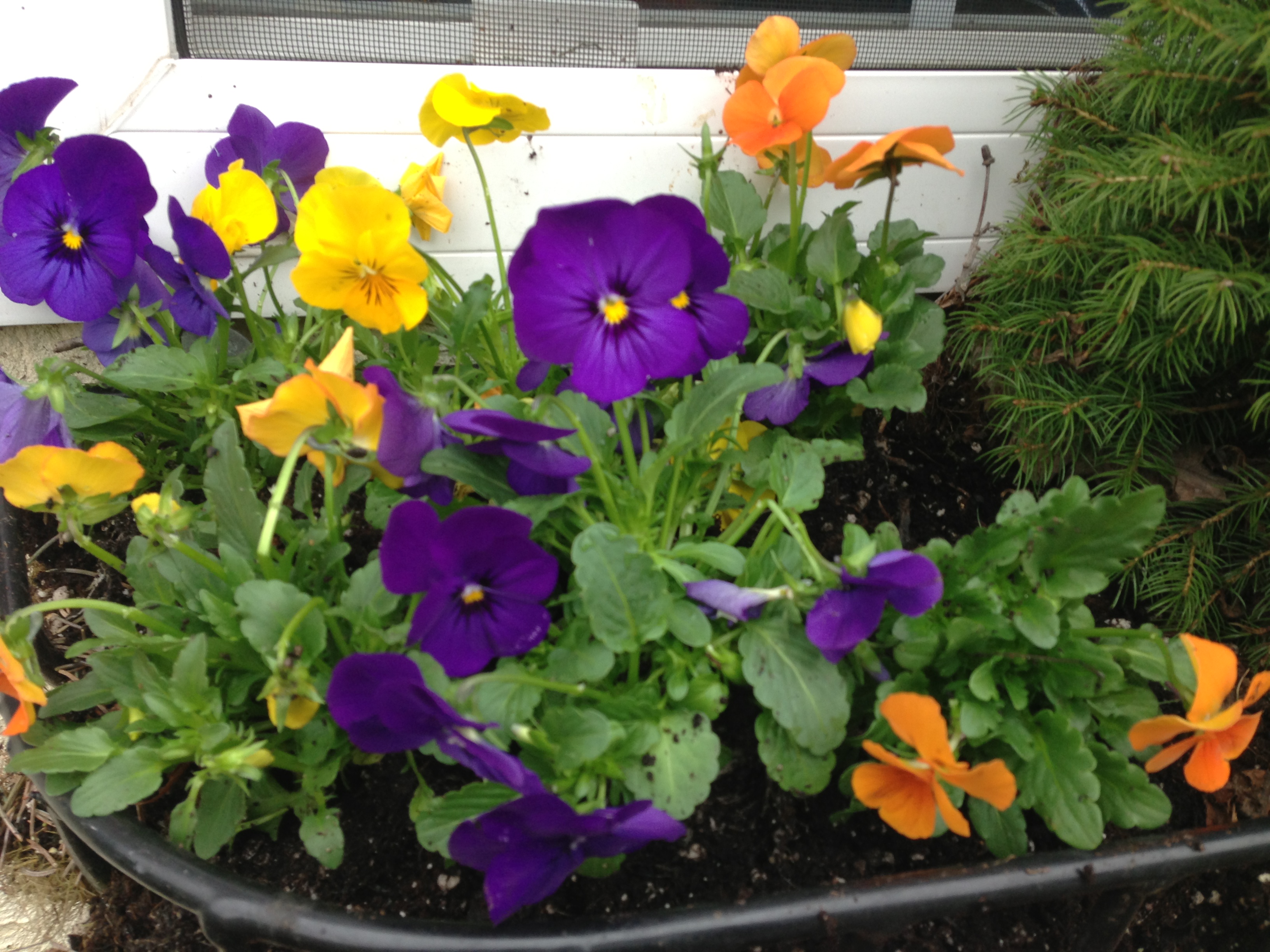 Planting pansies in our window boxes relieved the gloom of a rainy day today. I feel like writing an ode to pansies, I love them so much.
