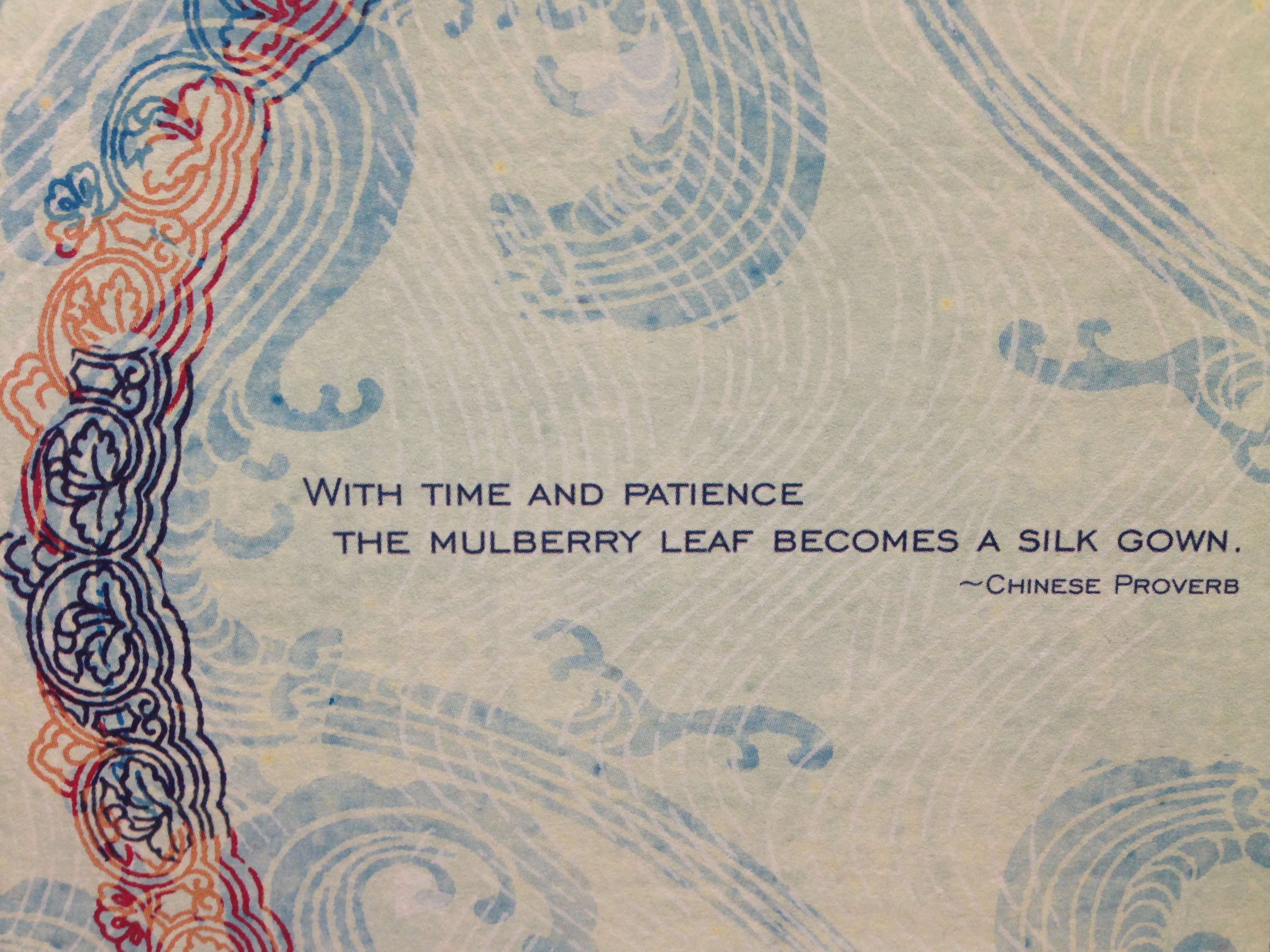We expect quick results in this super-charged world.  I opened a box of stationery to write an overdue note to a friend, and this quote was on the inside of the box.  It was just what I needed.