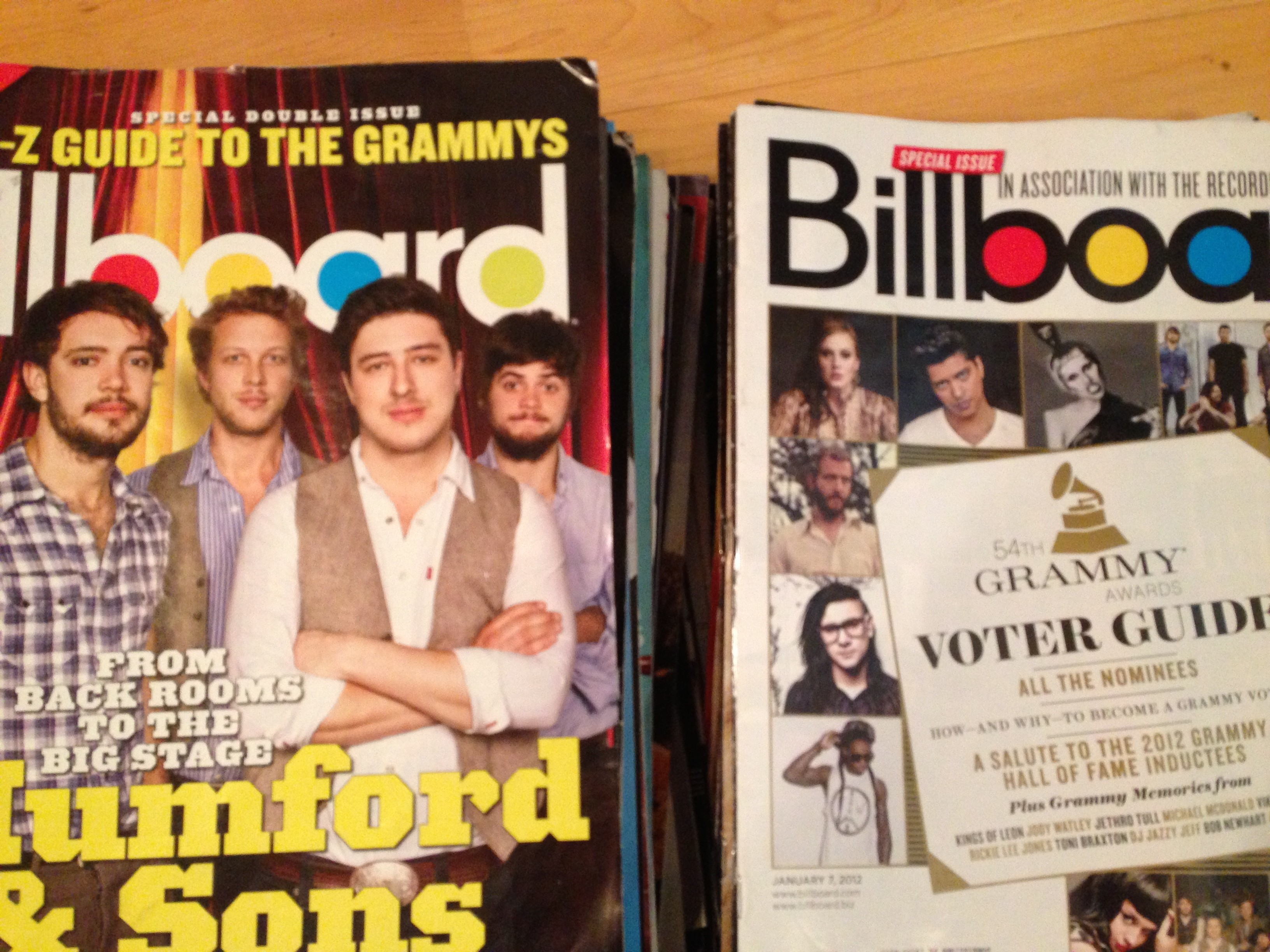 Today’s clump seemed like a mindless waste of time. Our son had a subscription to Billboard magazine for about two years: 2011 on the right, 2012 on the left. They are now in chronological order. I remember asking him quite a long time ago whether he wanted to keep them, and he had said there were some articles he still wanted to read.