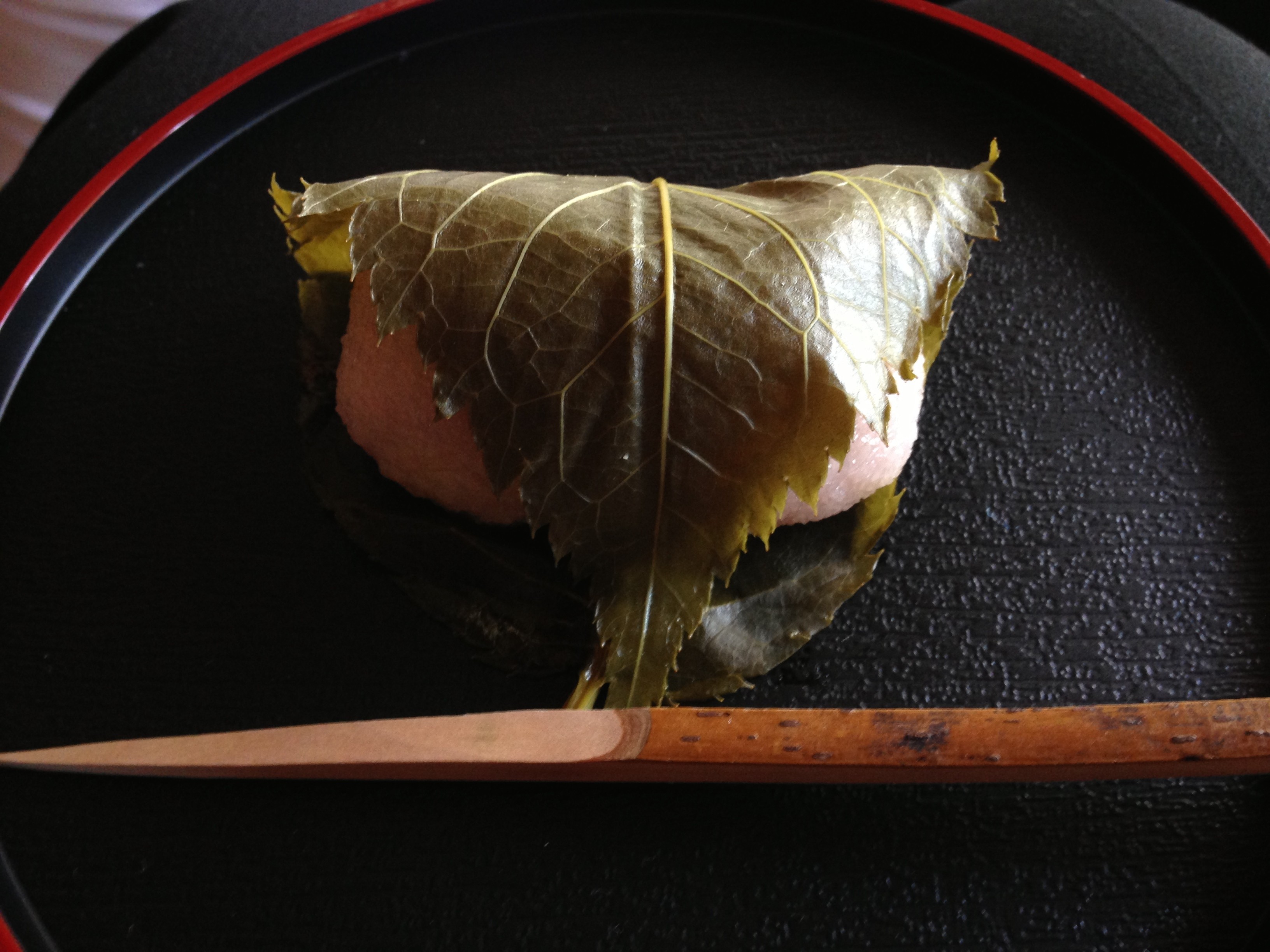 We were served a sweet wrapped in a young cherry tree leaf that had been fermenting for a year …
