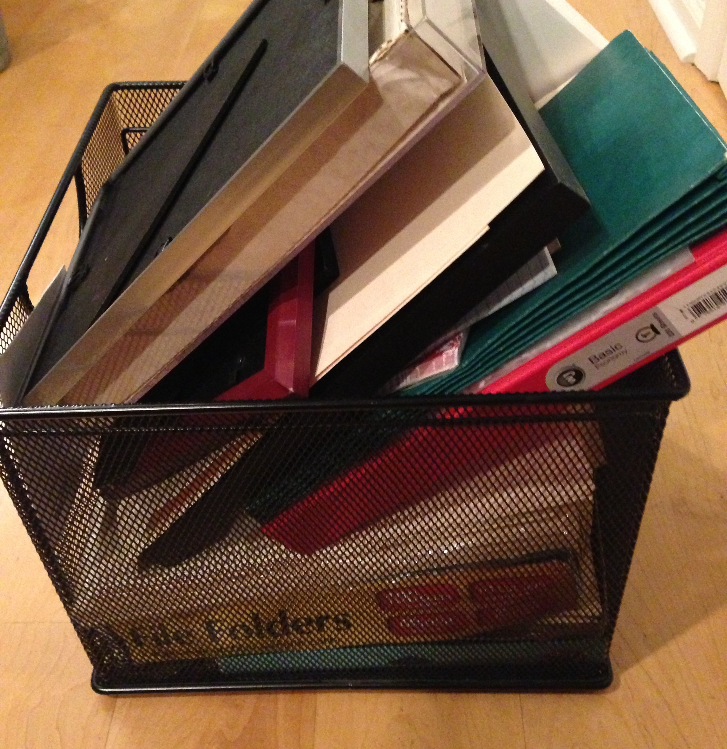 Clump #187: Clear out wire basket of assorted junk that had migrated into son’s bedroom.