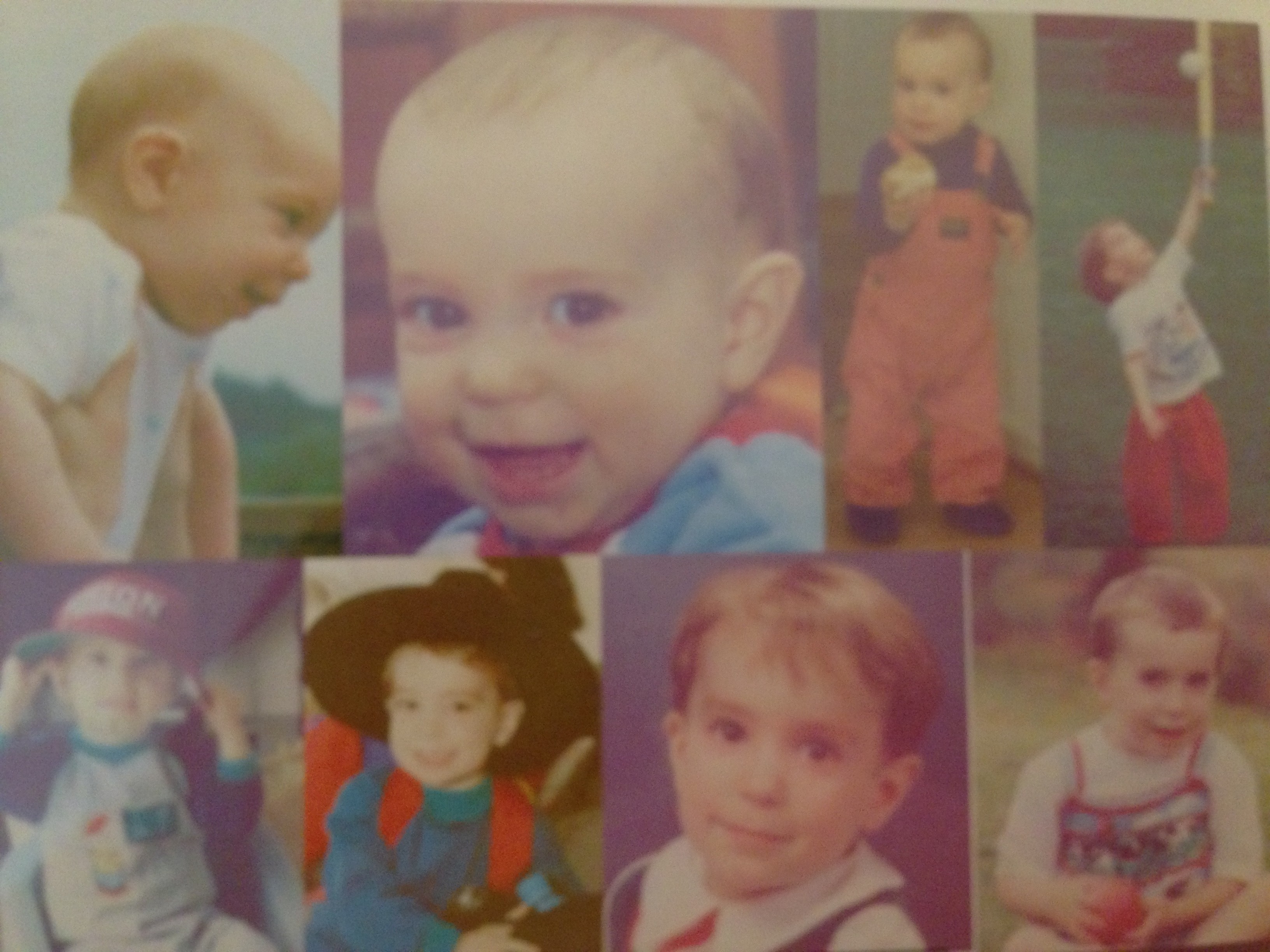 Oh, my poor heart strings! Today is our son’s birthday, and when I turned over the picture frame on top I was overwhelmed. It was a photo compilation my younger sister had made for another birthday years ago. Here’s a portion of it, a little blurry, like my eyes right now: