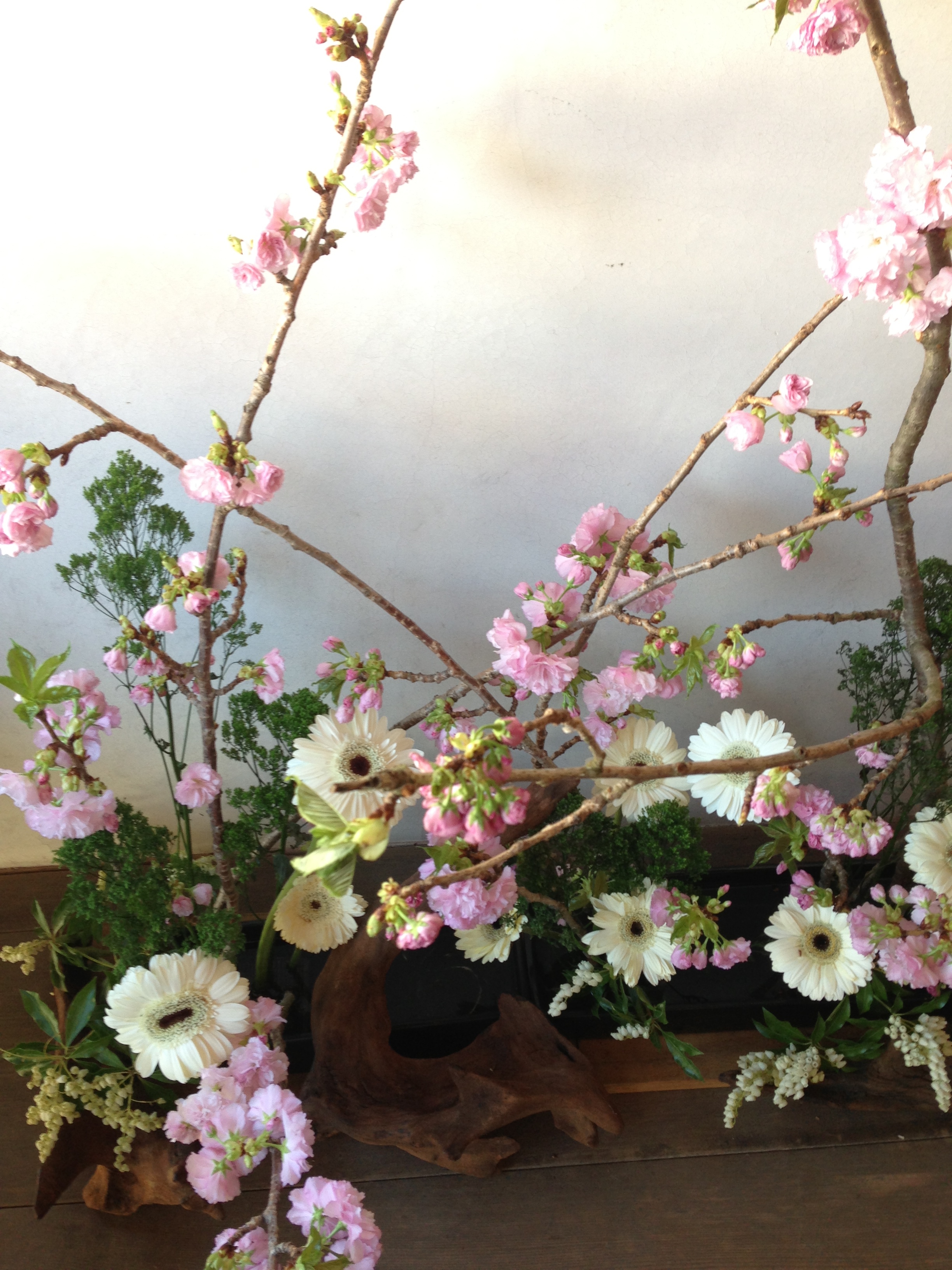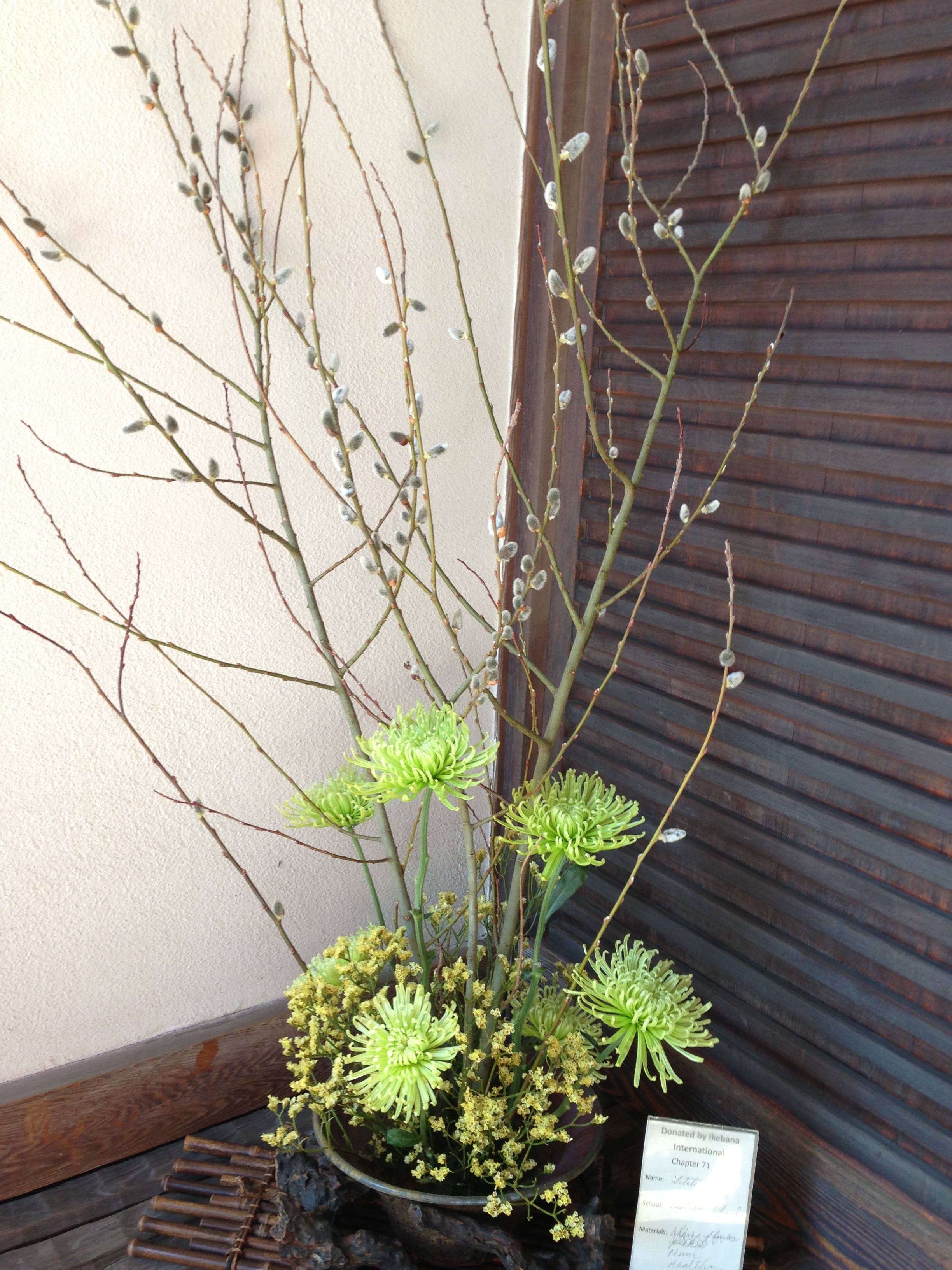 My friends and I were enamored with the Ikebana style flower arrangements adorning the house.  I looked up Ikebana International when I got home and a definition on the official website read, “In principle, Ikebana aims not at bringing a finite piece of nature into the house, but rather at suggesting the whole of nature, by creating a link between the indoors and the outdoors.”