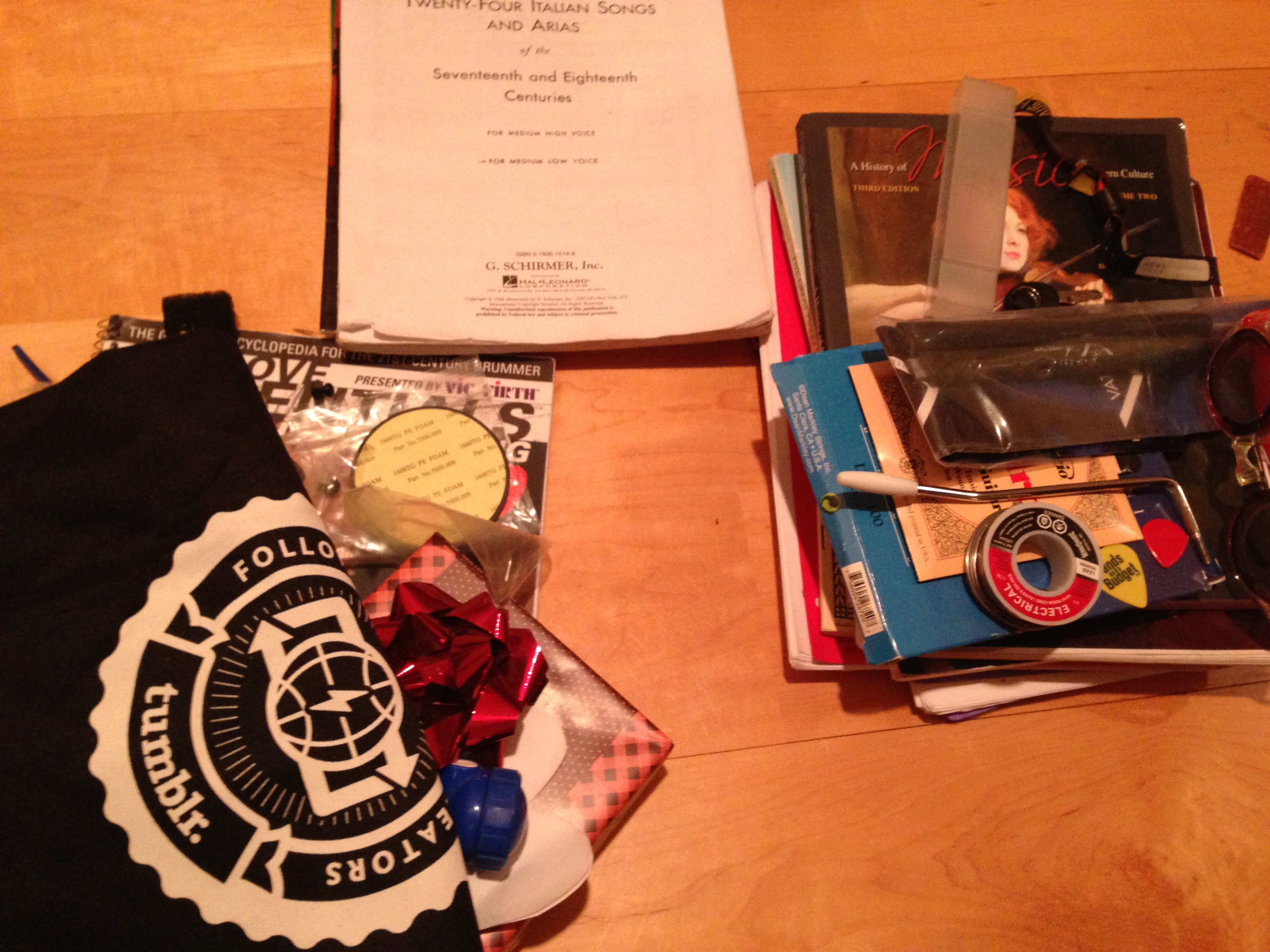 Today I had a good Skype-chat with our son and we confronted three piles from his room, including the dreaded “Miscellaneous.”  We’ll keep the pile on the right.  The other two are heading out, one way or another.