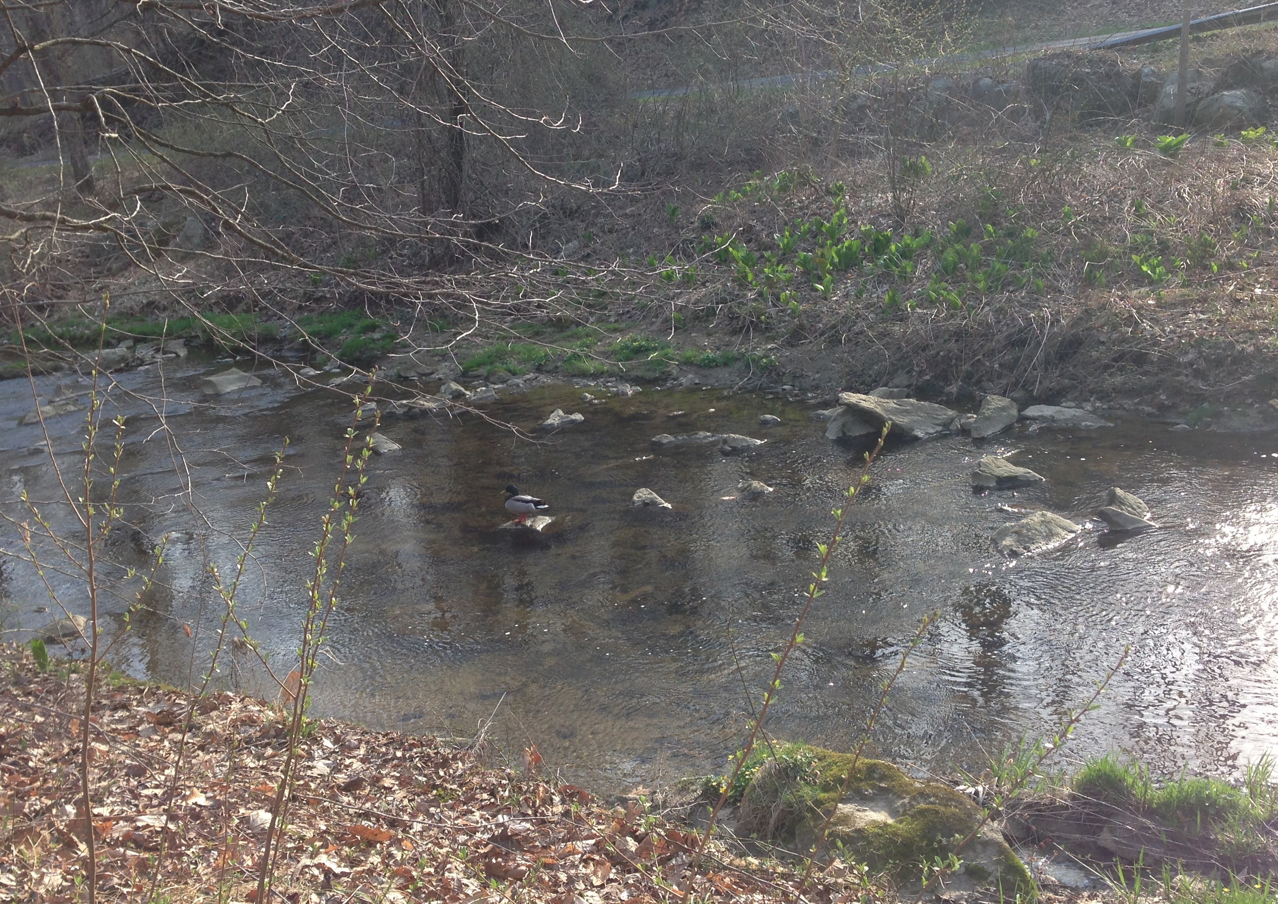 The duck on the rock stands still amidst the current of change (I was wishing I had had a better lens).