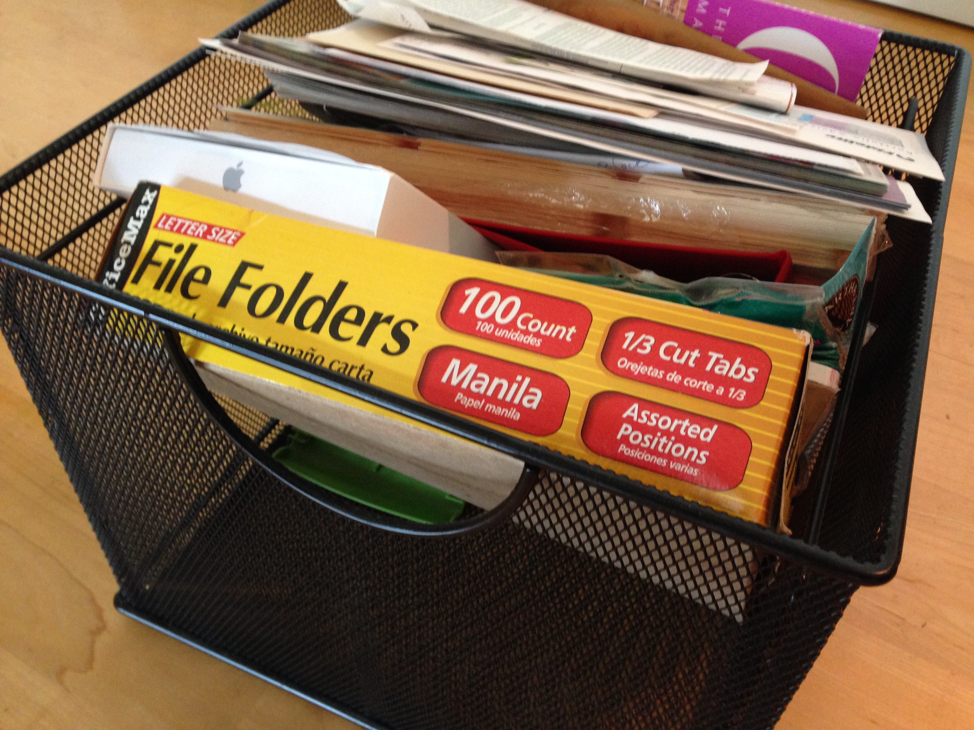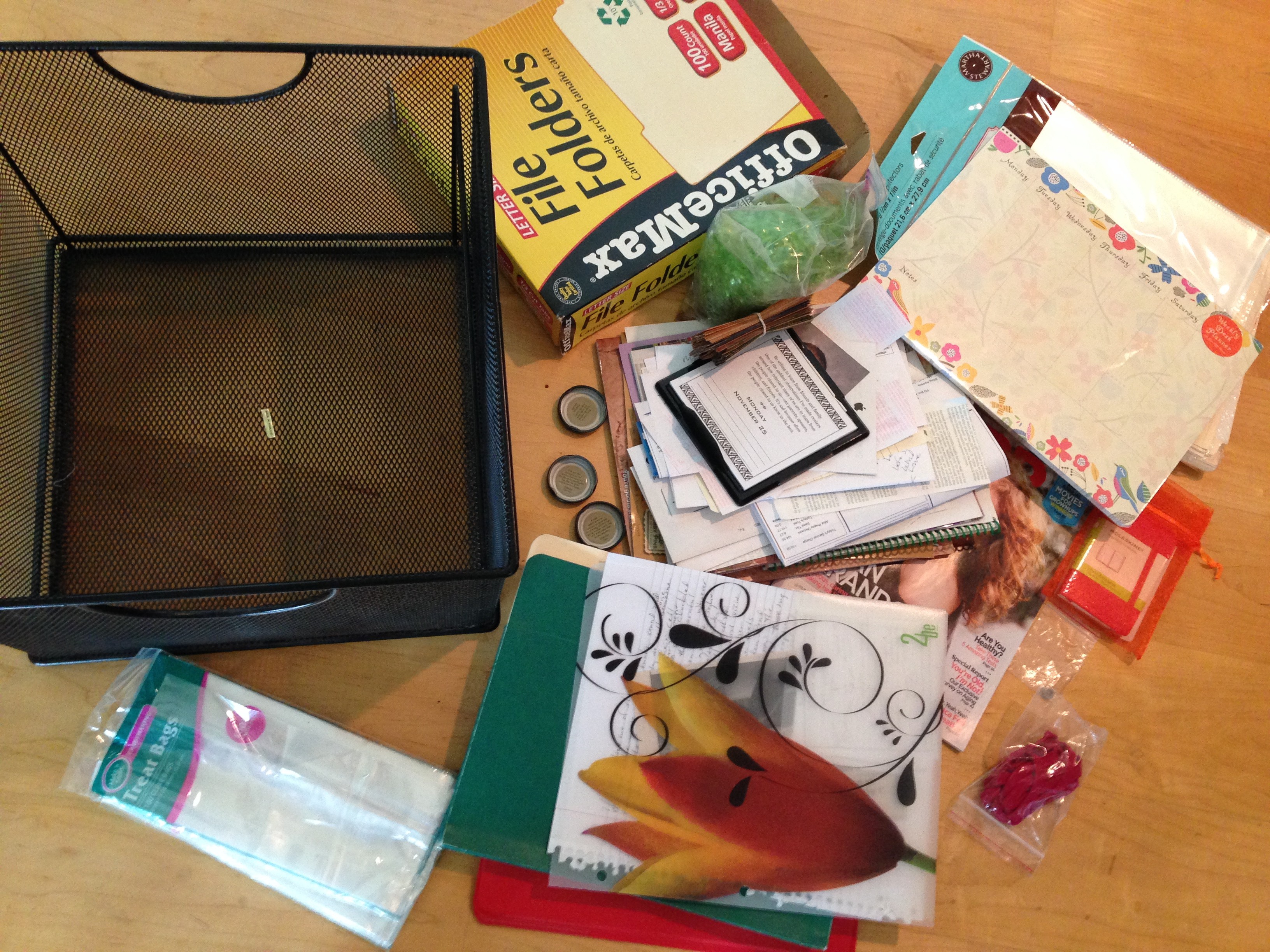 I considered giving away the Monday through Friday calendar note pad (unopened, unable to help me get organized), but I decided to actually give it a whirl, and placed it on my desk.  Here goes!