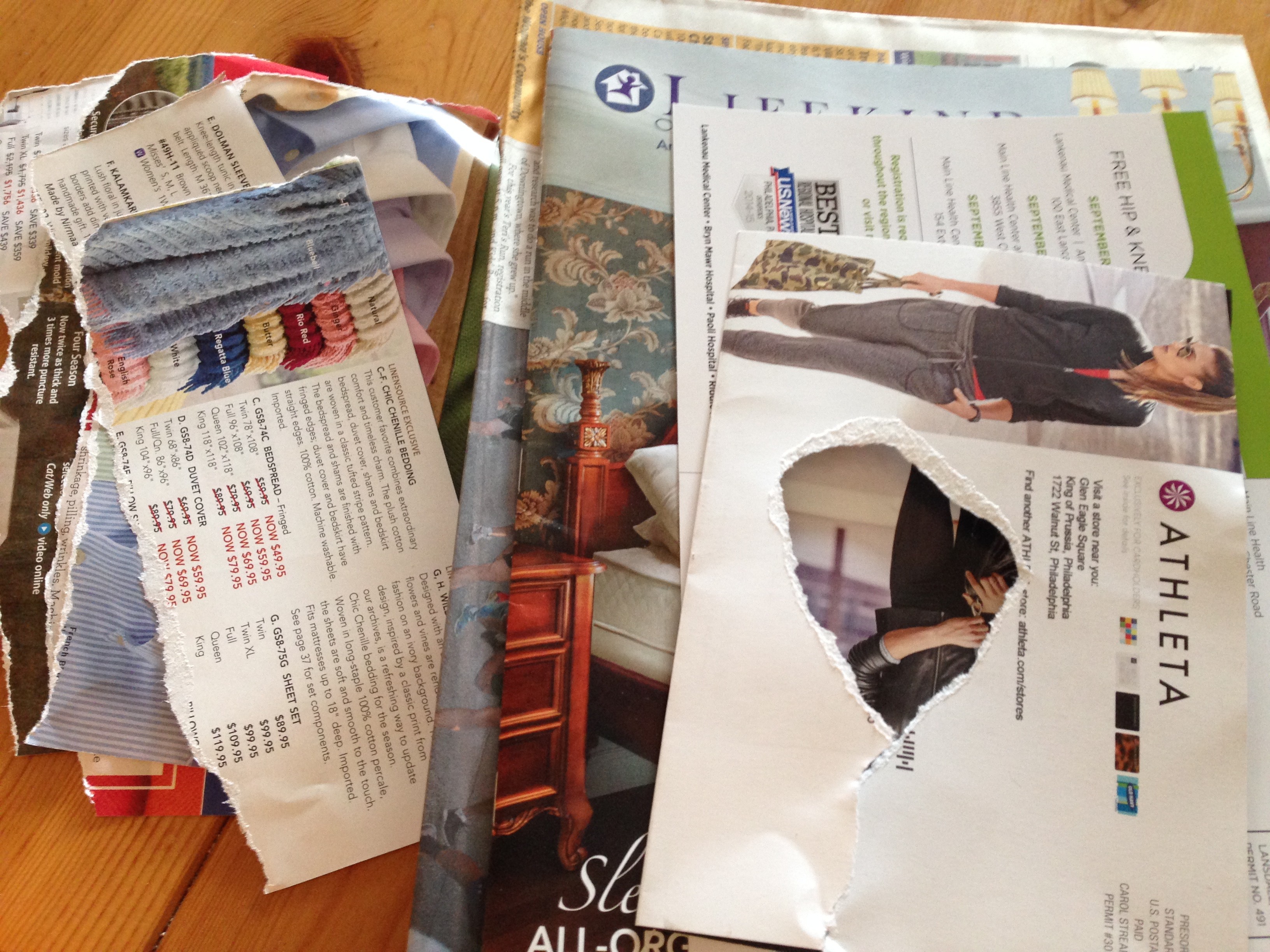 Equally cathartic in its own steady way: keeping up with the burgeoning piles of catalogs coming to our house, the start of the pre-holiday buy-buy-buy drumbeat. Makes me think of my late brother-in-law who used to say when dealing with left-over food, “Should I throw it out now, or next week?”