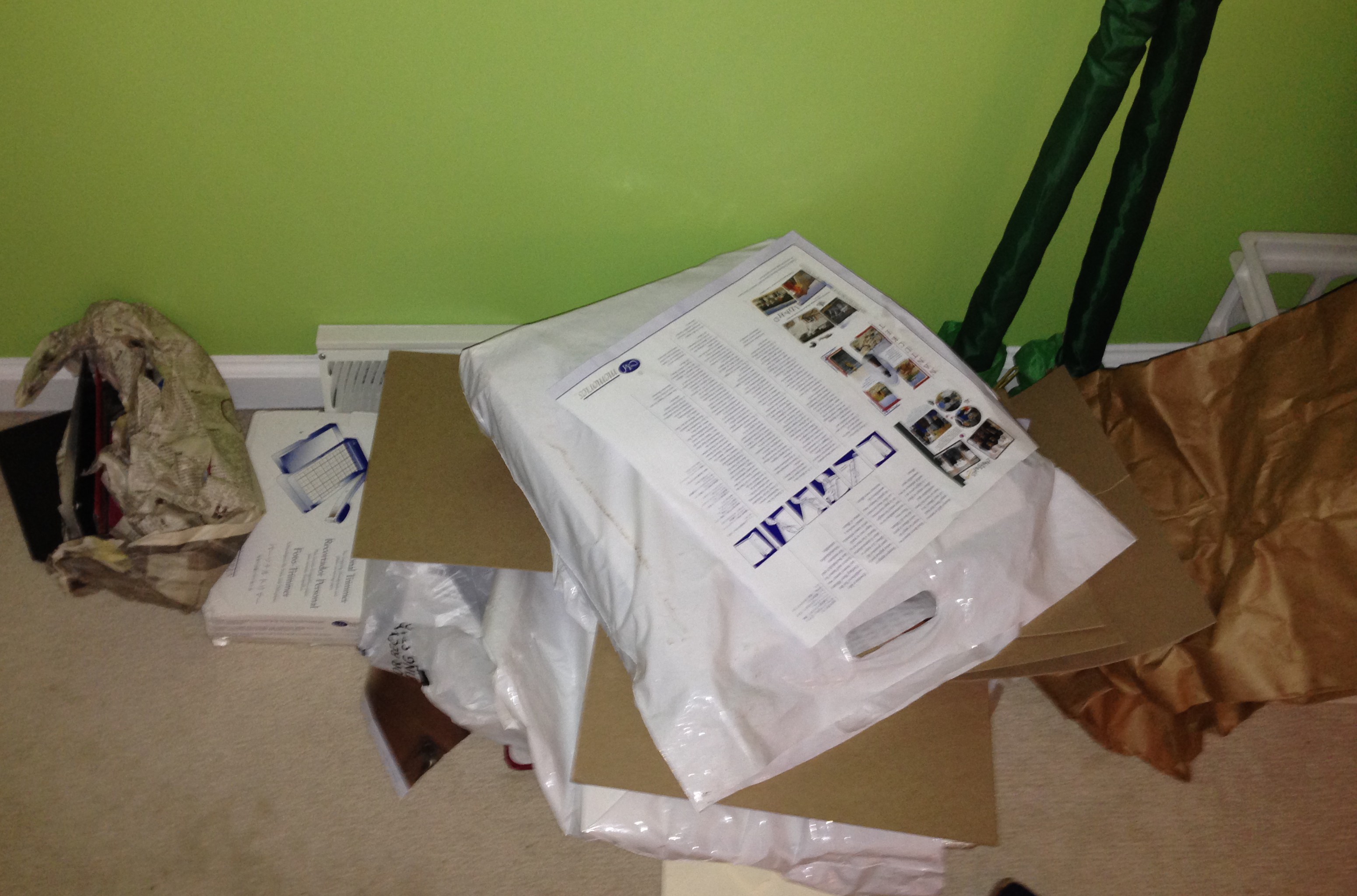 I’m coming down to the finish of the get-ready-for-compay challenge. Yikes. It’s time to start cleaning out the rooms where my sisters-in-law will be staying. This will have to suffice as a “before” photo for our younger daughter’s room. I don’t want to embarrass her. She spent a lot of time doing a miraculous job of clearing out the basement. She also put a bunch of old photos in albums, and this is the corner where she kept the supplies. I can’t fault her too much for leaving her room in less than optimal condition, given how much she helped out.