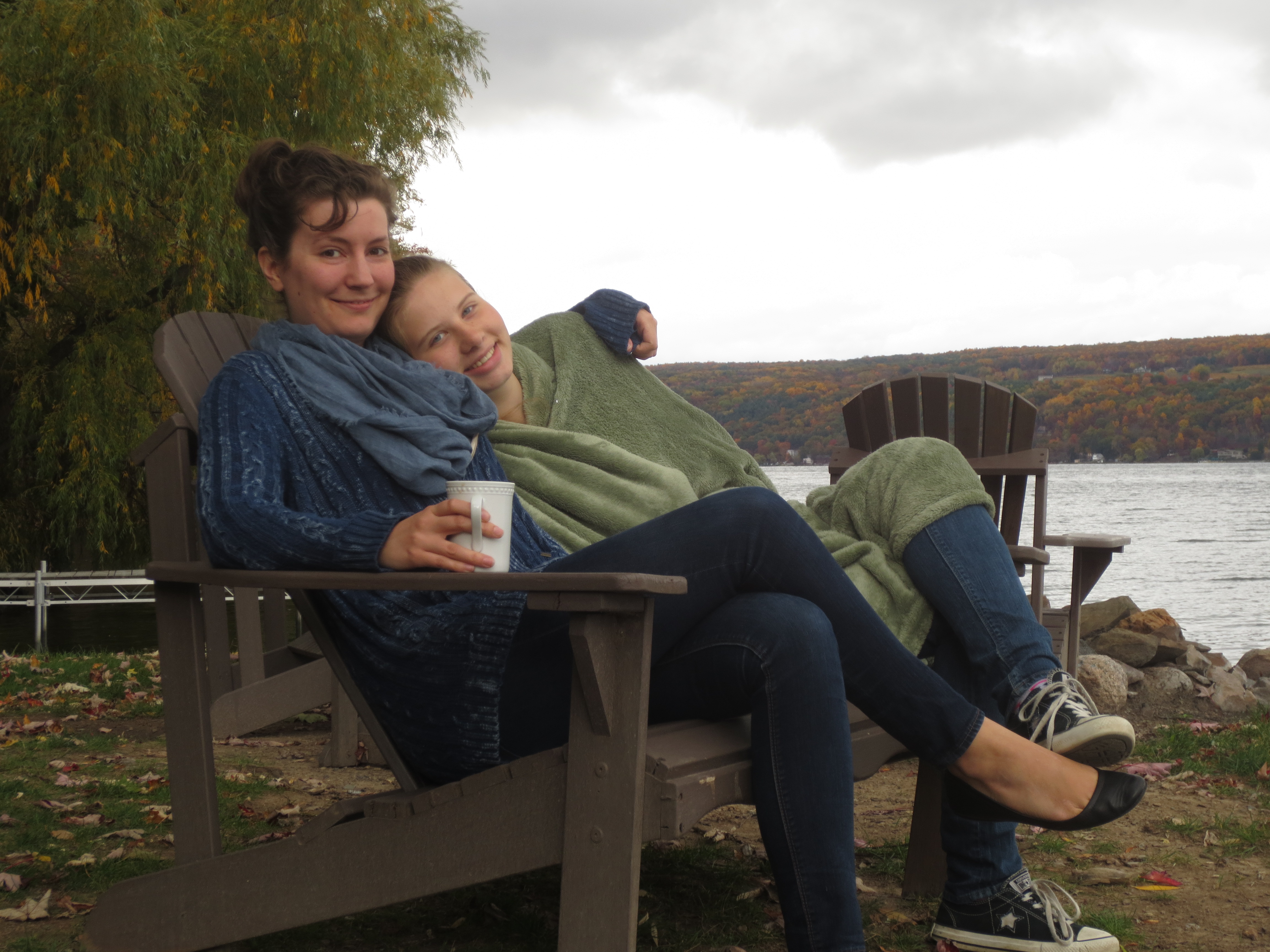Some big things happened when I was gone from the blogosphere. First, I had a “big” birthday. To mark the occasion, I was determined to take a dip in the lake where my family and I were staying for the celebration. Yes, it was October. Oh, yes, the water was cold. My older daughter and youngest niece joined me. Here are some of the wonderful gifts from the experience: