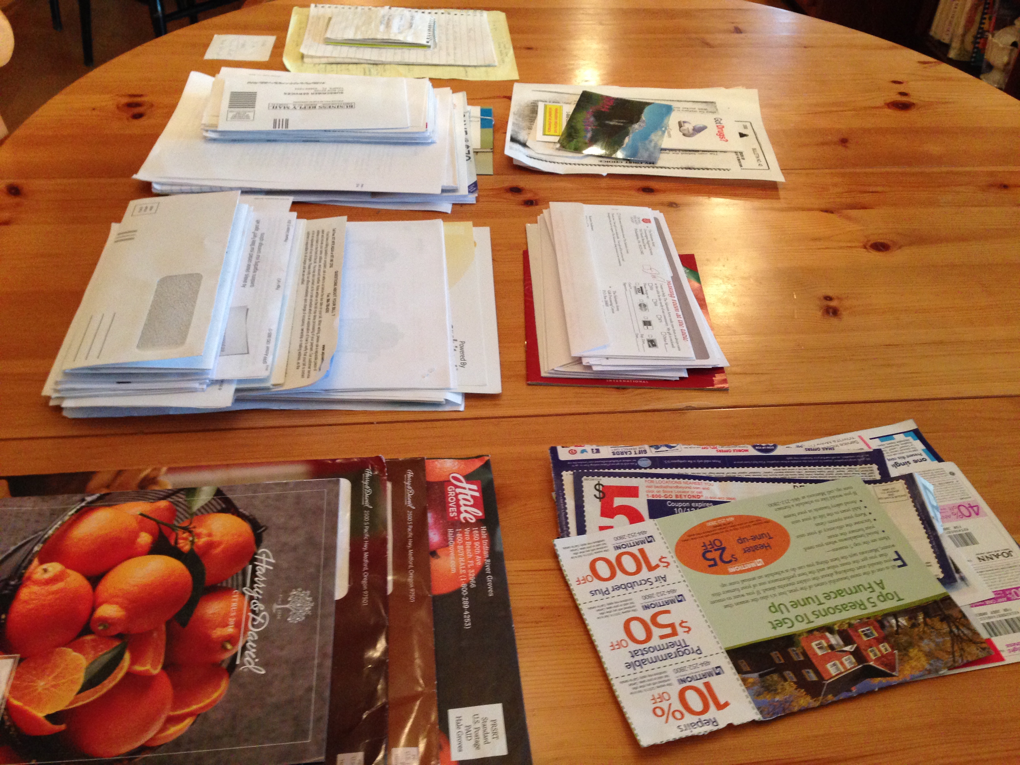 And as promised, a clearing took place inside our house, too: the inner core of the massive paper pile documented in yesterday’s post.  I organized it all into logical sub-piles, filed the fileable papers, and will work on the “action” pile tomorrow during business hours, since many items require a phone call.