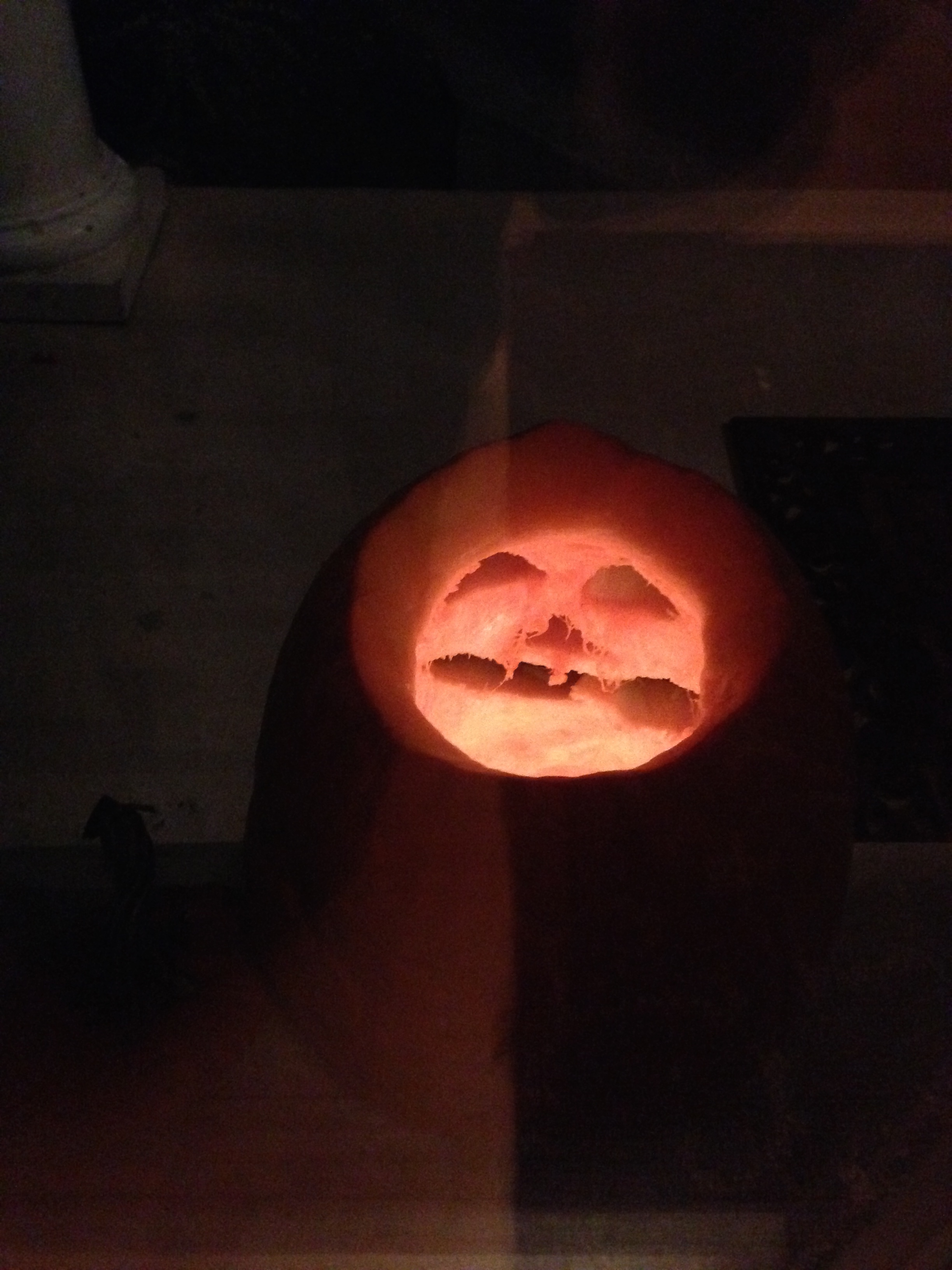 I’ve been doing a lot of thinking about this dichotomy between the public and private self/home. The pumpkin I carved for Halloween made for an unexpectedly funny illustration. Private, raw, and untamed: