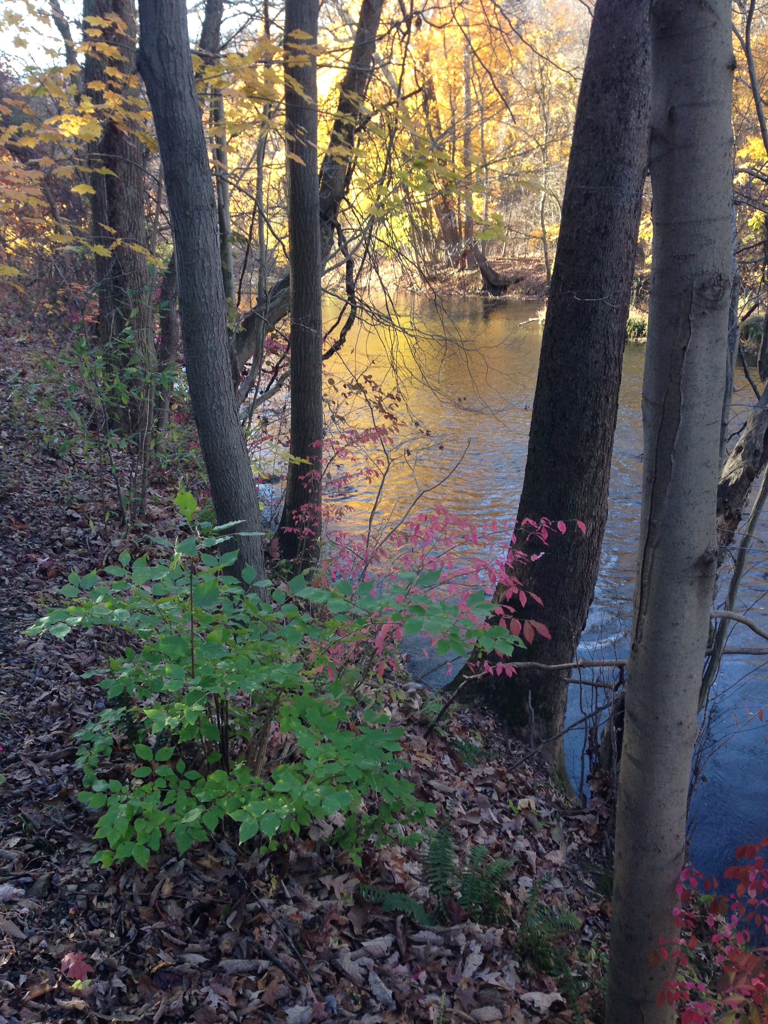 I took the photos above and below this morning, in an effort to capture the state of transition in the outside world.  Last bursts of glorious color. In the grocery store the seasons were transitioning, too.  I couldn’t decide whether it was a changing of the guard between Halloween and Christmas, or whether it was a war, with Santas and snowmen overpowering the pumpkins.