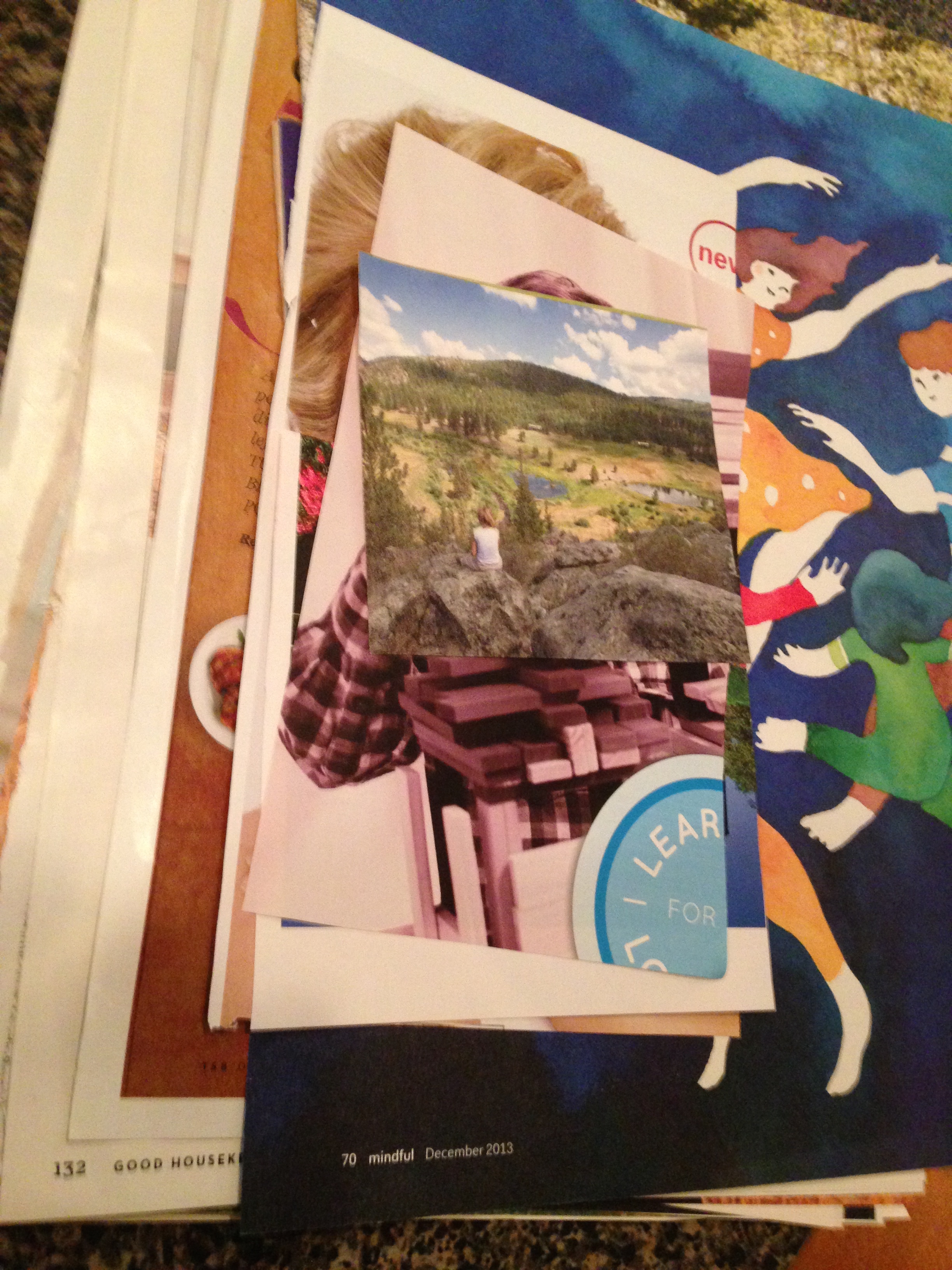 I also found a stash of magazine photos I had cut out quickly one day with my older daughter, with the intention of making a vision board.  You know, telling the universe what it is that you want in your life.